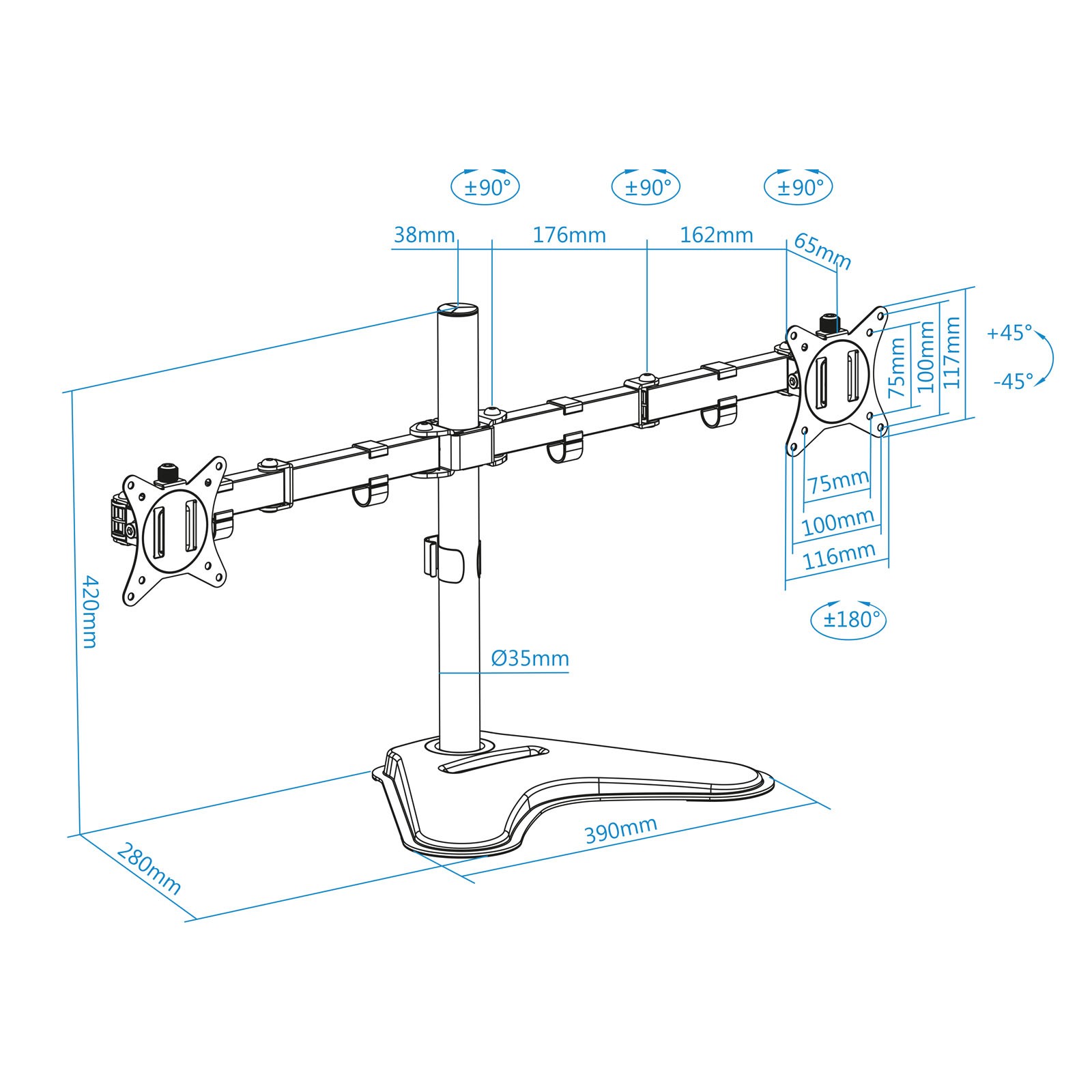 TooQ DB1702TN-B, Libera installazione, 9 kg, 43,2 cm (17"), 81,3 cm (32"), 100 x 100 mm, Nero