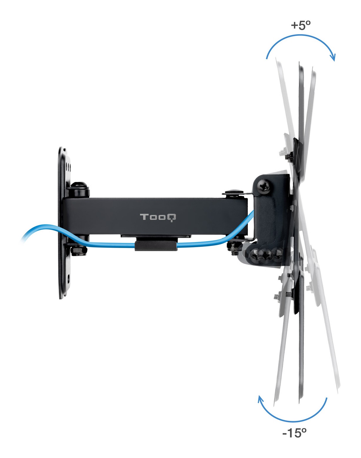 TooQ LP1343TN-B, 75 x 75 mm, 200 x 200 mm, -15 - 5°, -60 - 60°, Acciaio, Nero