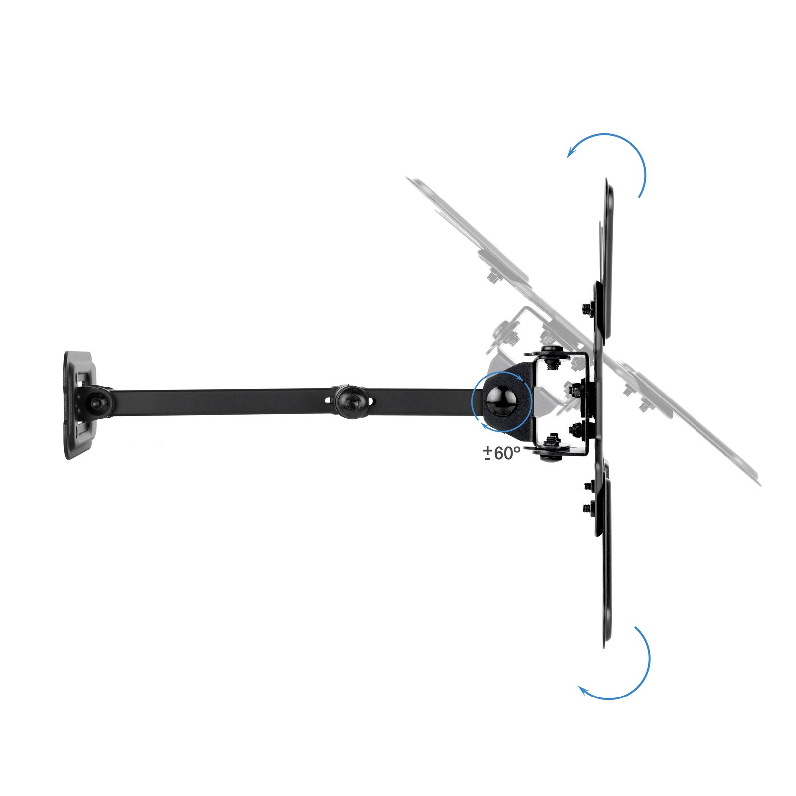 TooQ LP1345TN-B. Peso massimo (capacità): 20 kg, Capienza minima dimensioni dello schermo: 33 cm (13"), Capienza massima dimensioni dello schermo: 109,2 cm (43"), Compatibilità interfaccia di montaggio (min): 75 x 75 mm, Compatibilità interfaccia di montaggio (max): 200 x 200 mm. Inclinazione: -15 - 5°, Angolo di rotazione: -90 - 90°, Distanza dalla parete (min): 6,6 cm, Distanza dal muro (massima): 37 cm. Colore del prodotto: Nero
