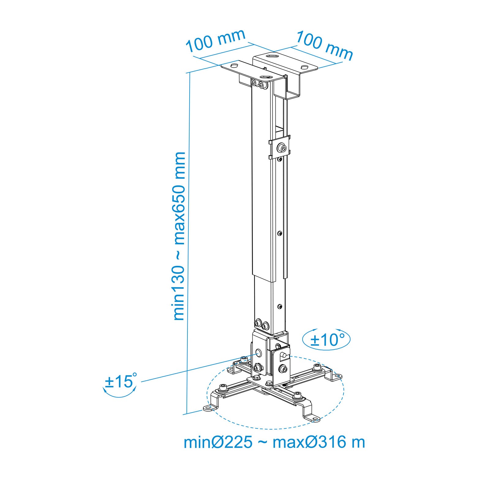 TooQ PJ2012T-B, Soffitto, 20 kg, Nero, -15 - 15°, 650 cm, 130 cm