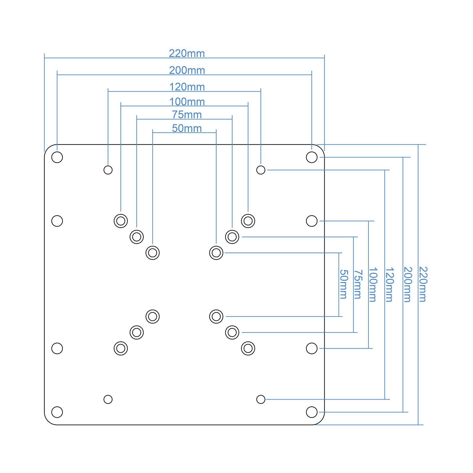 | Panel mounting interface 24/5000 Interfaccia per montaggio a pannello | 50 x 50,75 x 75,100 x 100,100 x 200,200 x 100,200 x 200 |