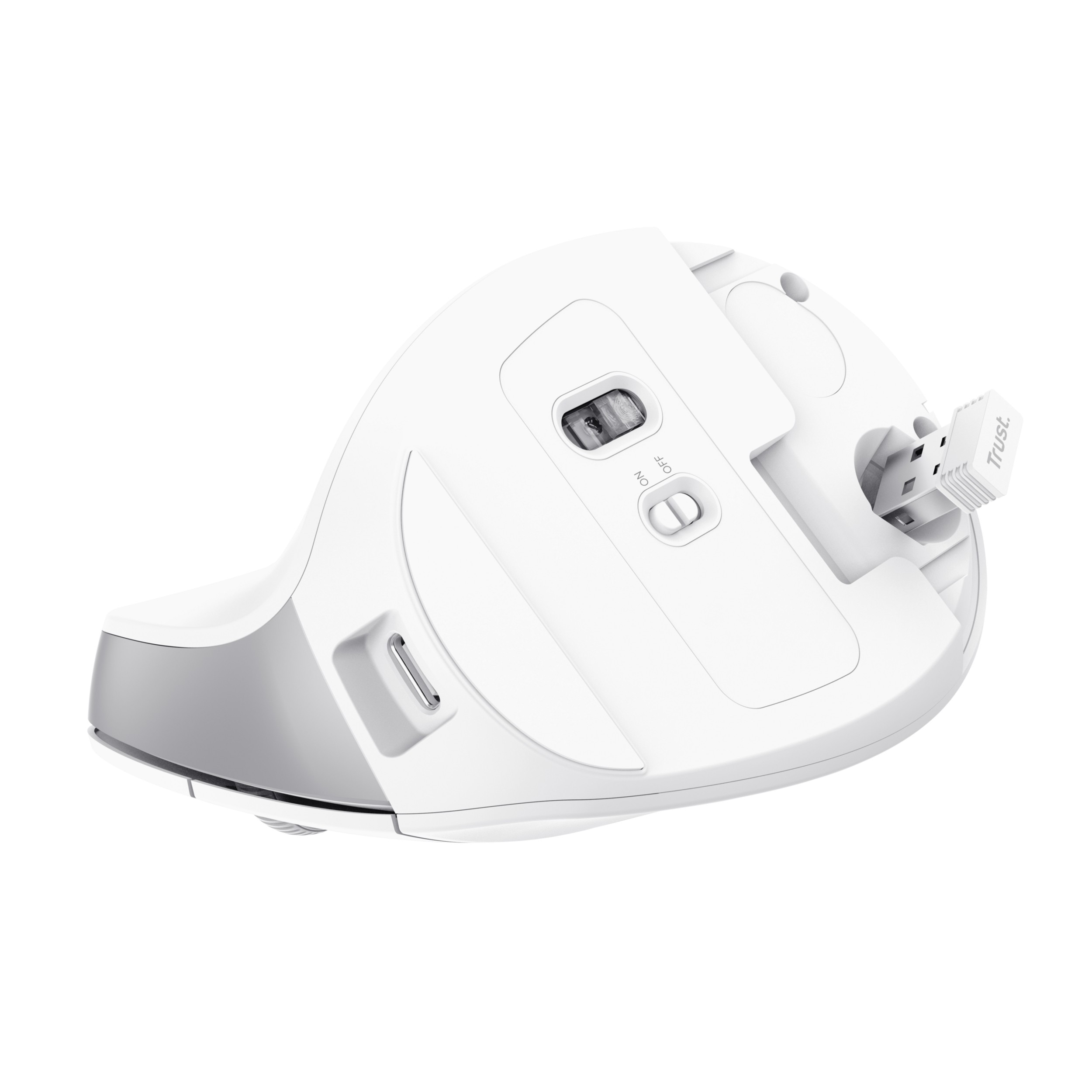 Trust Bayo II, Mano destra, Design verticale, Ottico, RF Wireless, 2400 DPI, Bianco