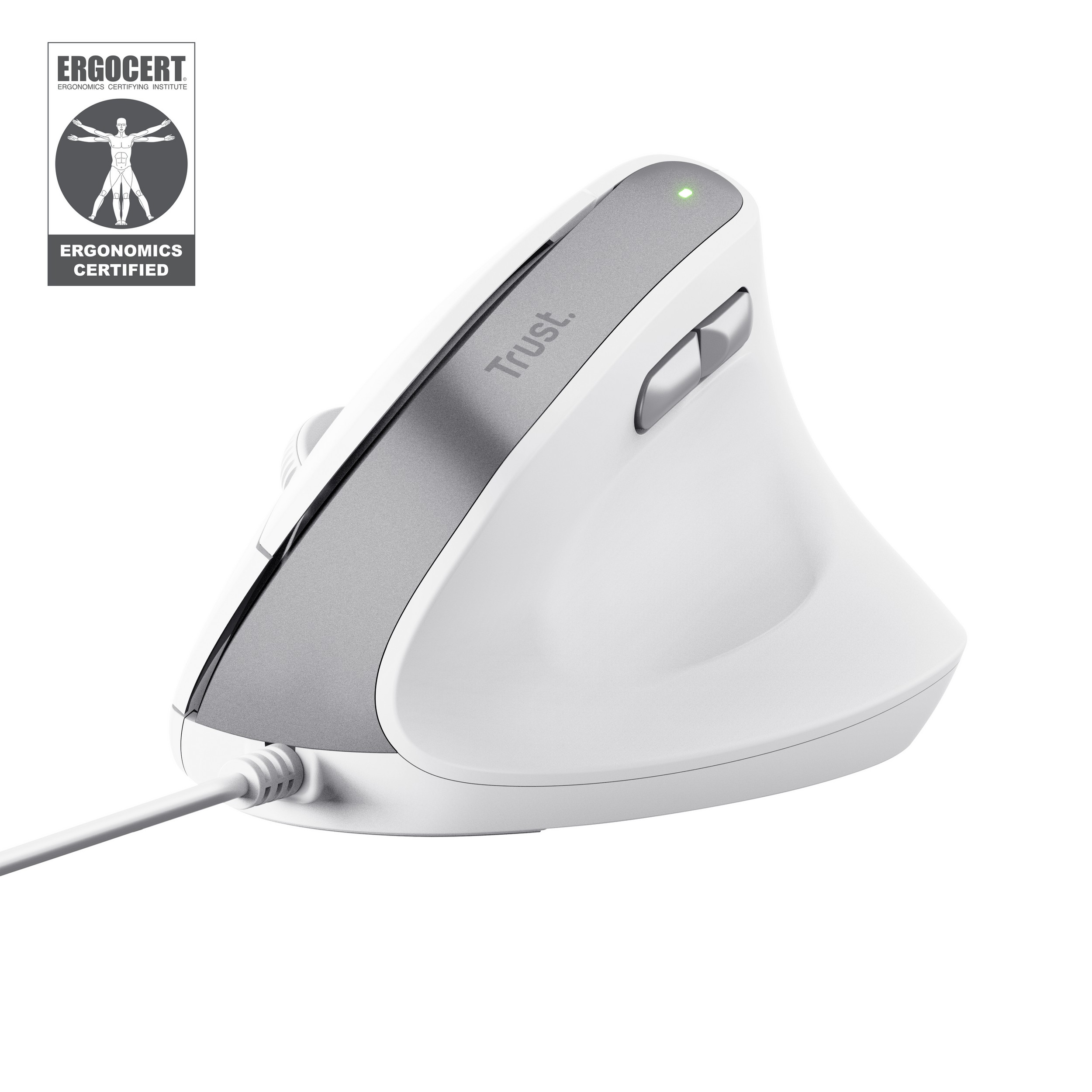 Trust Bayo II, Mano destra, Design verticale, Ottico, USB tipo A, 2400 DPI, Bianco
