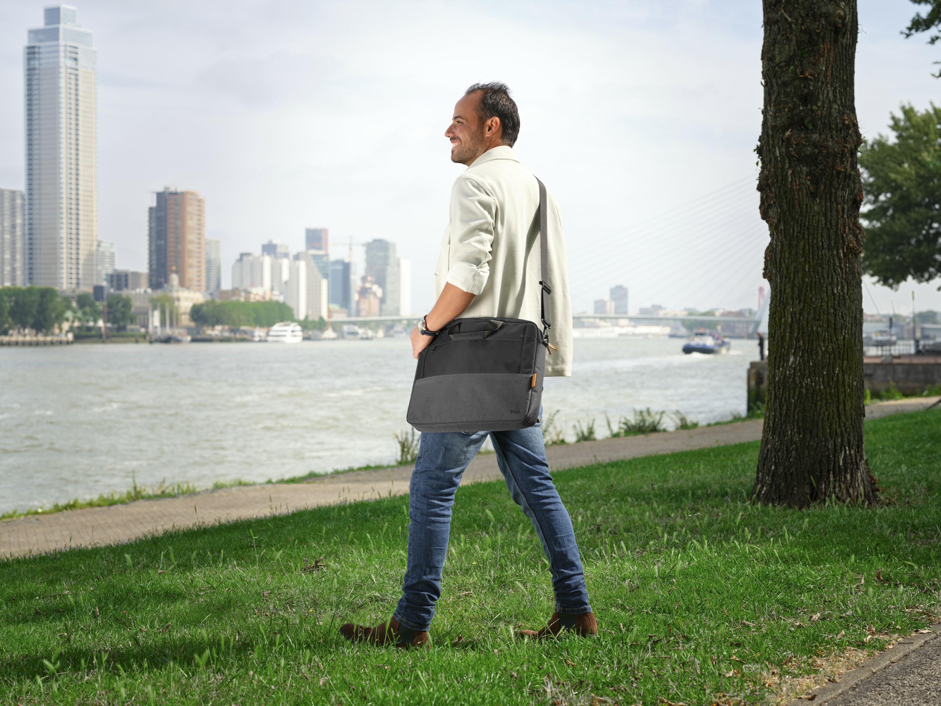 La Lisboa è molto più di una semplice borsa professionale per laptop. Realizzata con un tessuto ricavato da 8 bottiglie in PET riciclate, consente di portare il tuo laptop ovunque tu voglia, nel rispetto dell'ambiente.