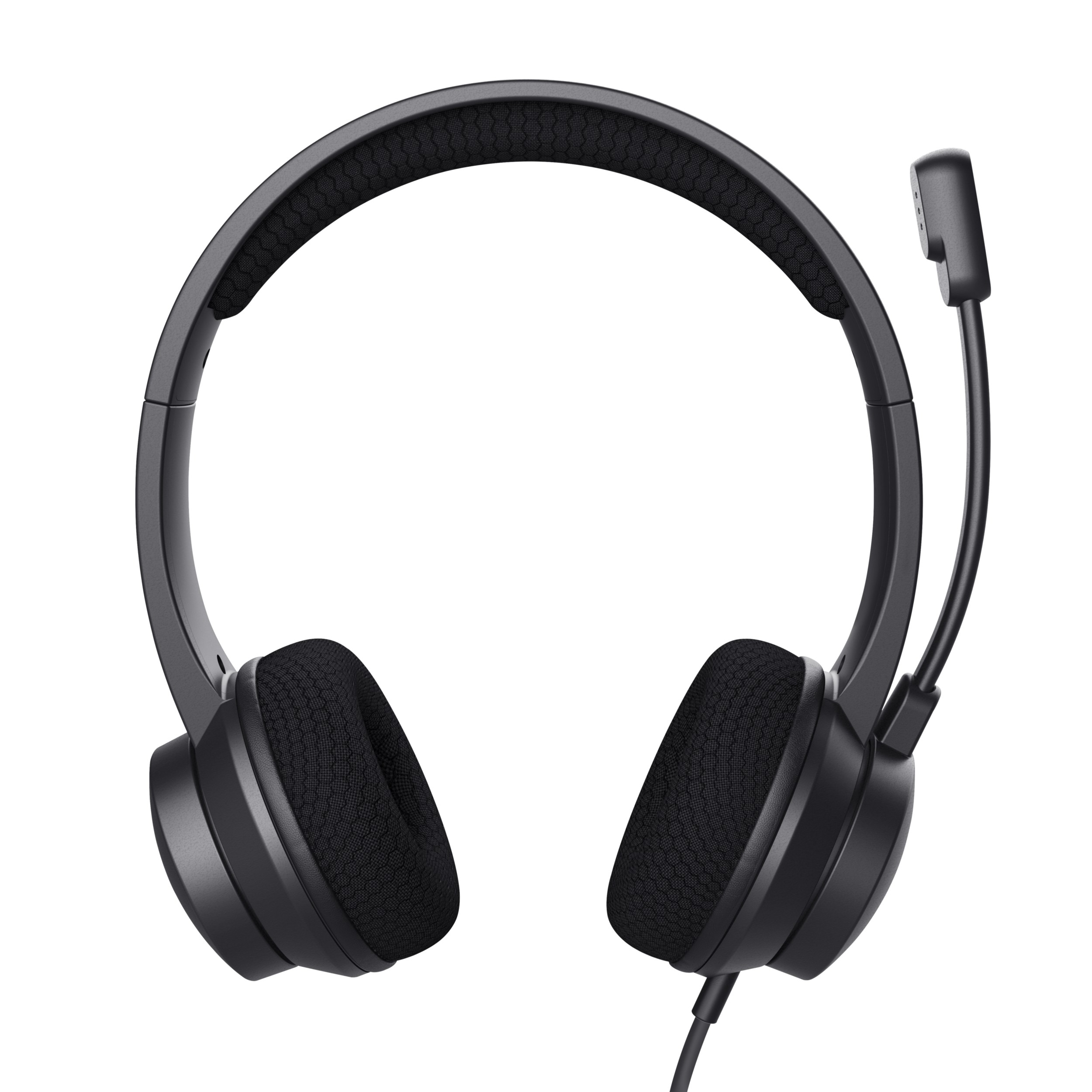 Cuffie on-ear USB per PC, leggere e dotate di archetto regolabile e microfono con tecnologia di cancellazione del rumore