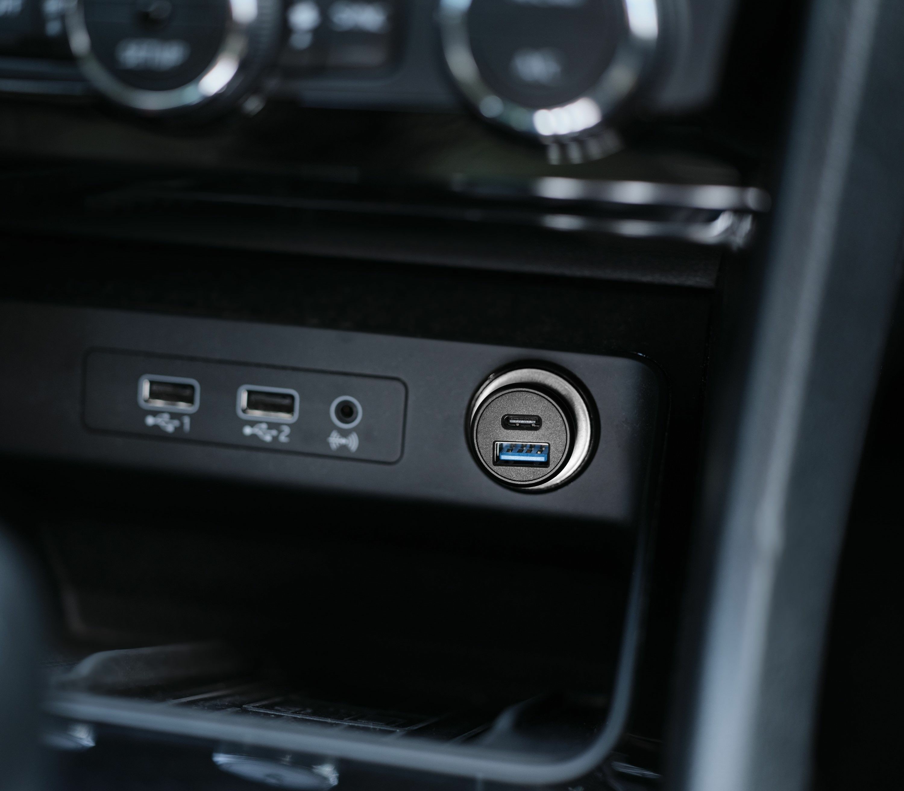 Caricabatterie per auto da 38 W con porta USB-C e USB-A, per ricaricare velocemente i dispositivi in viaggio