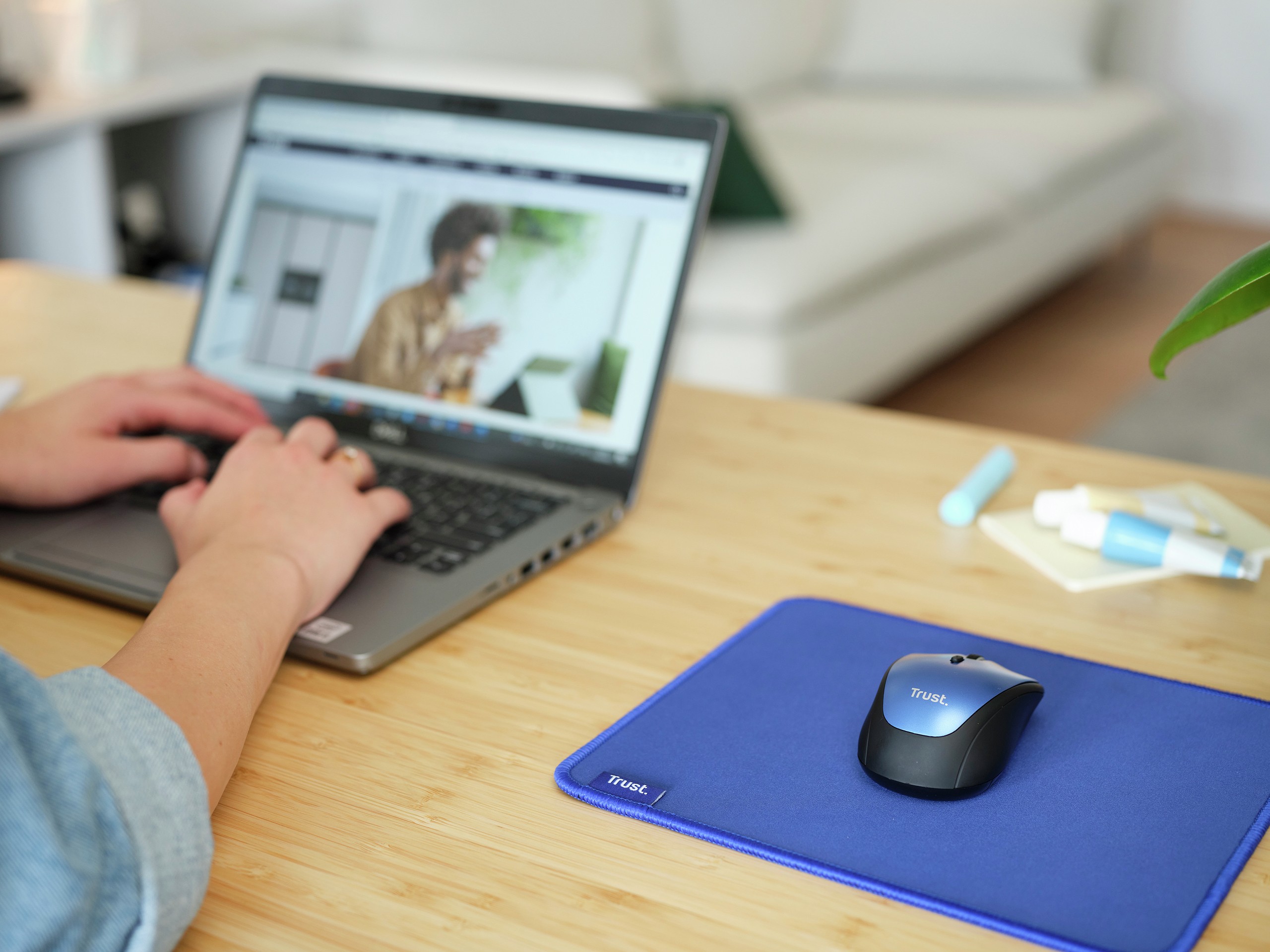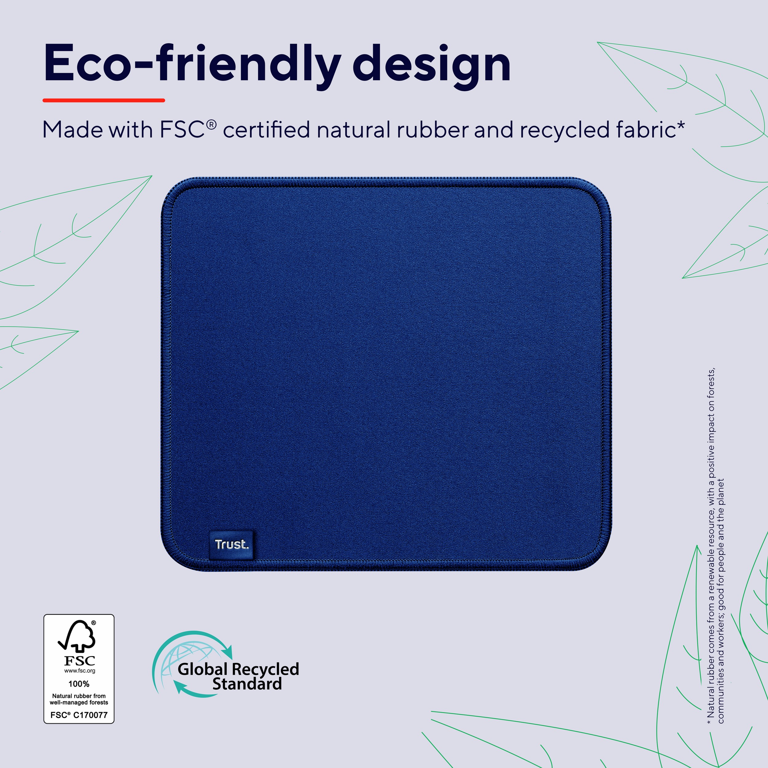 Trust Boye. Larghezza: 250 mm, Profondità: 210 mm. Colore del prodotto: Blu, Colorazione superficie: Monocromatico, Materiali: Gomma, Bordi cuciti