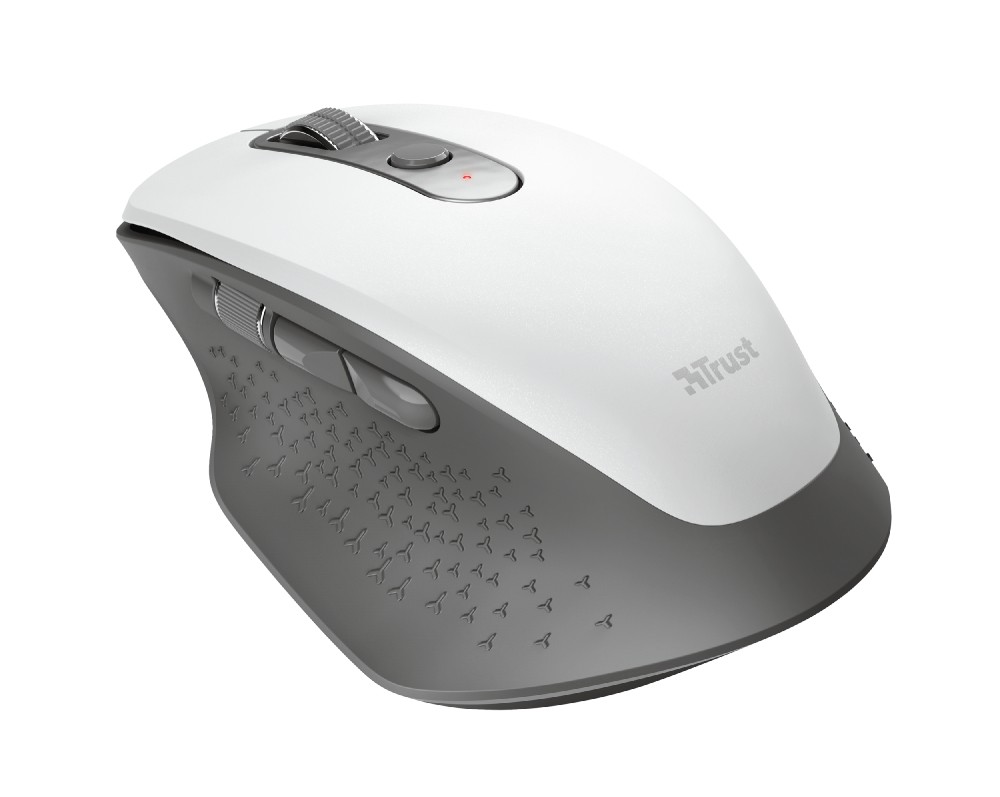 Trust Ozaa. Fattore di forma: Mano destra. Tecnologia di rilevamento del movimento: Ottico, Interfaccia dispositivo: RF Wireless, Risoluzione movimento: 2400 DPI, Tipo di pulsanti: Tasti premuti, Numero di tasti: 6, Tipo di scorimmento: Rotella. Alimentazione: Batterie. Colore del prodotto: Bianco