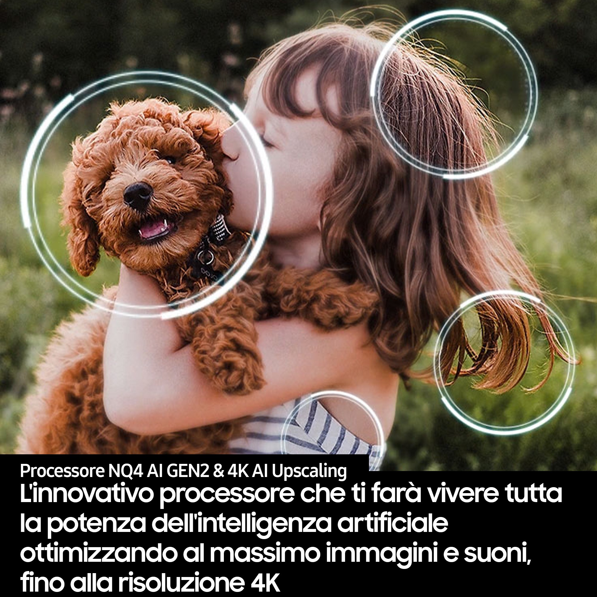 | Tecnologie Samsung (AV/TV) | 4K AI Upscaling, AI Auto Game Mode, Adaptive Sound, Art Mode, Auto HDR Remastering, Motion Xcelerator, Real Depth Enhancer, Samsung TV Plus, Workspace |