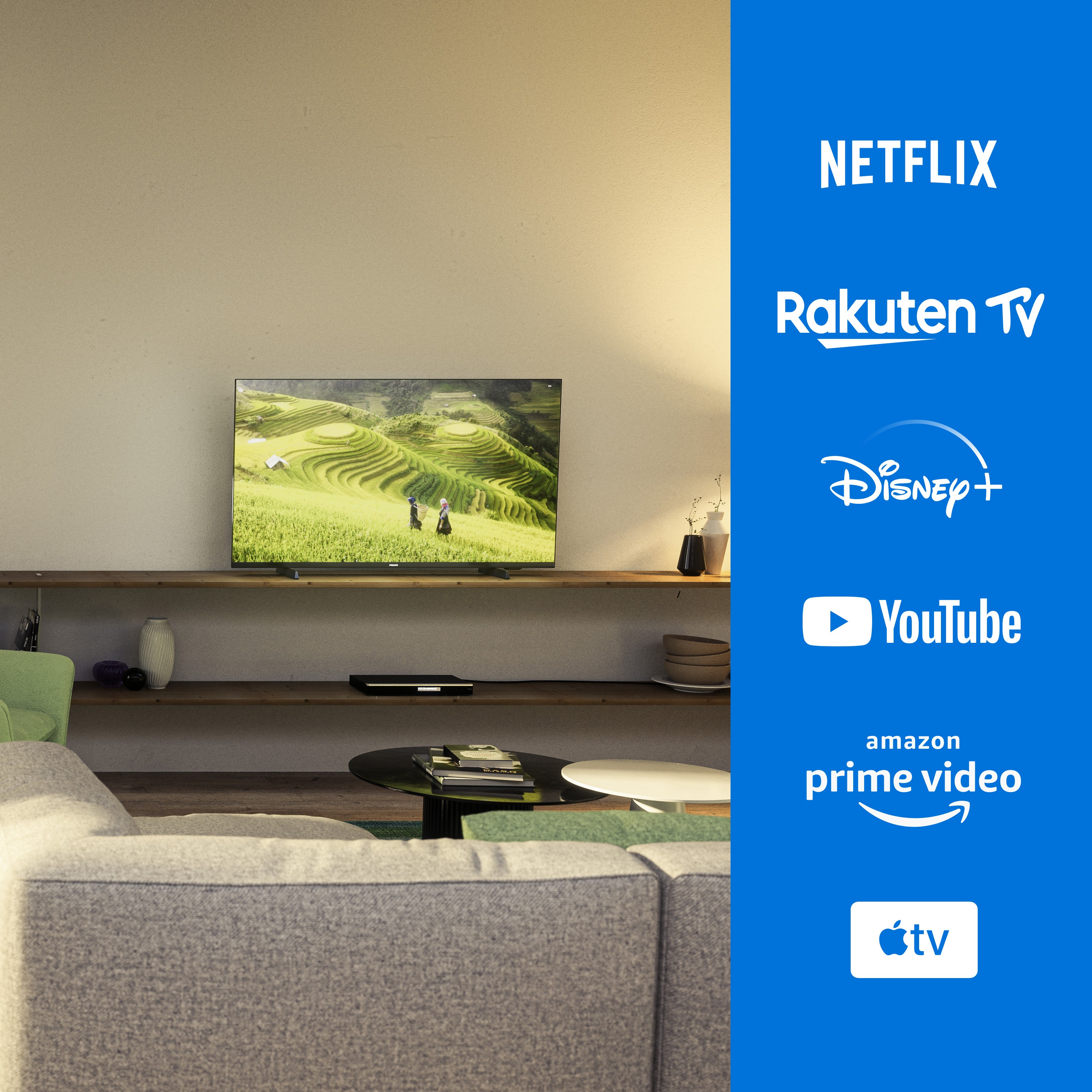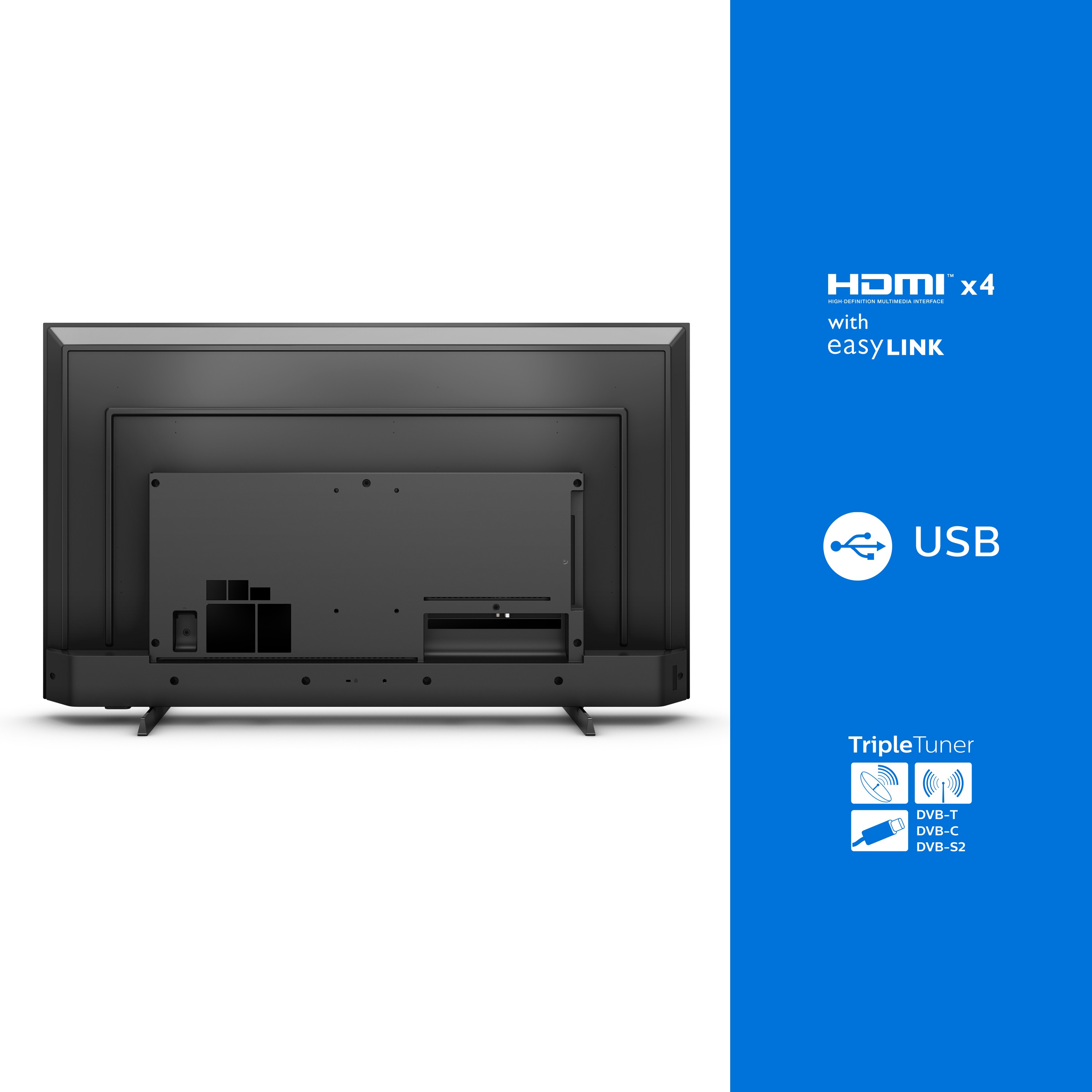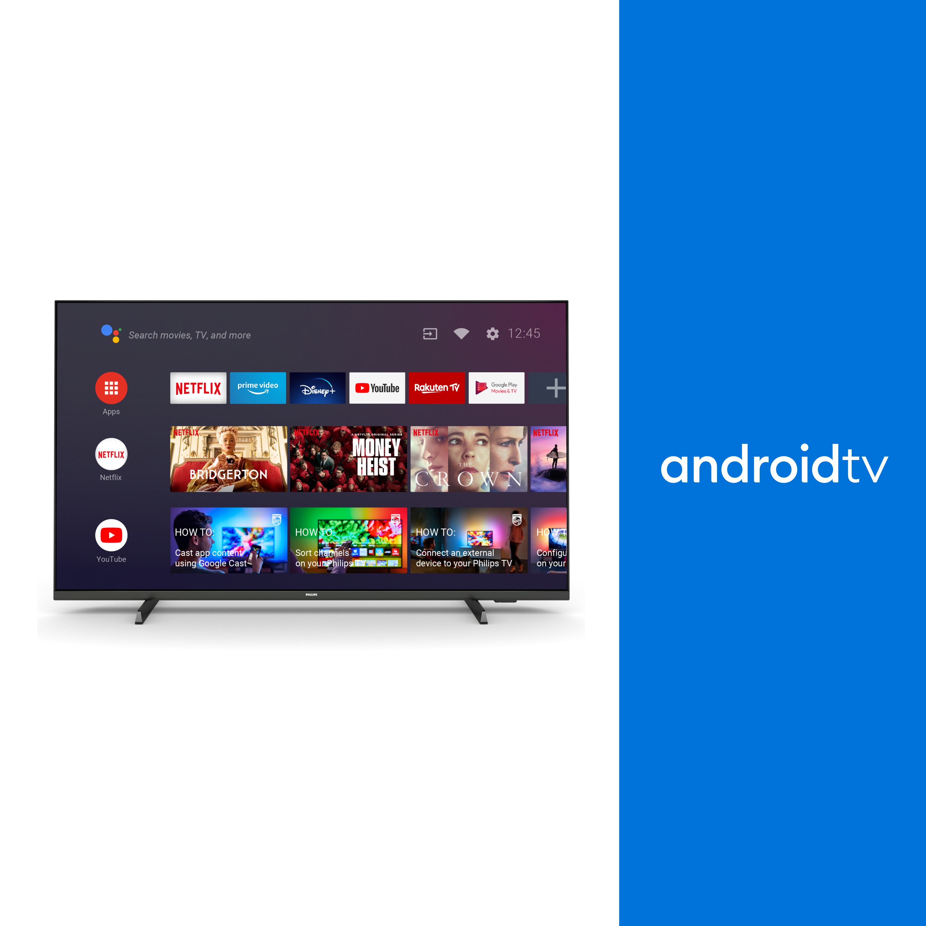 Immagini HDR vivaci. TV Philips UHD 4K. Il tuo TV Philips 4K UHD è compatibile con tutti i principali formati HDR, incluso Dolby Vision. Che si tratti di una serie imperdibile o di un nuovo videogioco, le ombre saranno più profonde, le superfici luminose brilleranno e i colori saranno più realistici. Audio e immagini come al cinema. Dolby Vision e Dolby Atmos Grazie all'eccellente supporto per audio e formati video Dolby, i contenuti HDR che guardi saranno davvero eccezionali. Potrai ammirare le immagini proprio come aveva immaginato il regista e sperimentare un audio ampio con chiarezza e profondità reali. Semplicemente smart. TV Android. Il tuo TV Philips Android ti offre i contenuti che desideri, quando vuoi. Puoi personalizzare la schermata principale per visualizzare le tue app preferite, semplificando la riproduzione in streaming dei film e dei programmi che ami, oppure riprenderli da dove hai lasciato. Ottimo per il gaming. Bassa latenza su qualsiasi console. Il TV Philips offre la connettività HDMI più recente e passa automaticamente a un'impostazione a bassa latenza quando inizi a giocare sulla console. Controllo vocale. Assistente Google. Compatibile con Alexa. Premi un pulsante sul telecomando per parlare con l'Assistente Google. Controlla con la tua voce il TV o i dispositivi domestici smart compatibili con Assistente Google. Oppure chiedi ad Alexa di controllare il TV tramite i dispositivi compatibili con Alexa. Design sottile e accattivante Cerchi un TV che si adatti alla tua stanza? Questo smart TV 4K è quello che fa per te! Lo schermo praticamente privo di cornice si abbina a qualunque tipo di arredamento, mentre con i piedini sottili lo schermo sembra galleggiare sopra l'unità o il tavolo della TV.