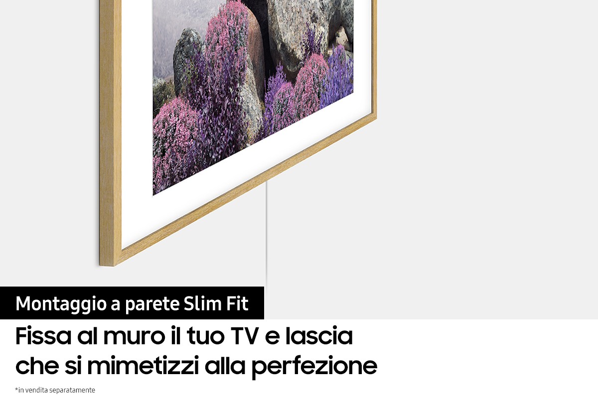 * Cornici personalizzabili vendute separatamente. La disponibilità di stili e colori può variare in base al Paese o alle dimensioni del TV.* La compatibilità della cornice personalizzabile dipende dal tipo di cornice. La variante moderna è compatibile con i modelli The Frame di dimensioni 43"~ 75", mentre la variante con angoli smussi è compatibile con i modelli da 65" e 55".