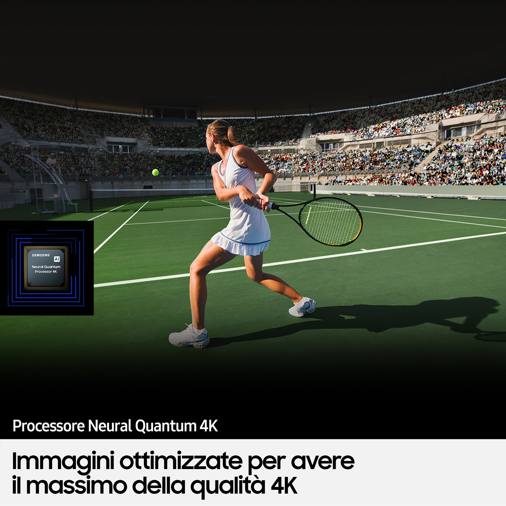 Il processore Neural Quantum 4K del display OLED di Samsung crea la migliore esperienza visiva di sempre. Grazie alla mappatura cromatica dinamica e alla luminosità OLED potenziata, i dettagli, i colori e il contrasto non sono mai stati così vividi. Il sistema 4K AI Upscaling è completato da 20 reti neurali, per immagini in qualità 4K potenti e realistiche.