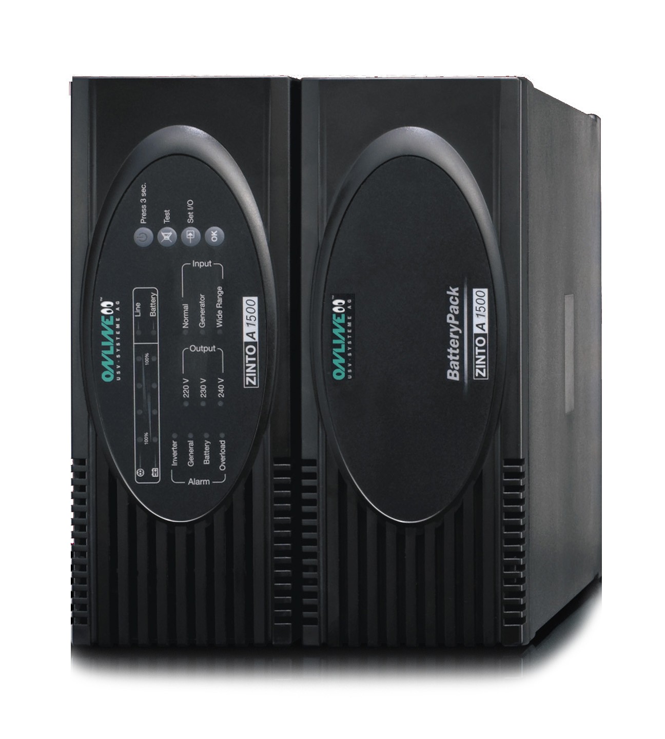 ONLINE USV-Systeme ZINTO A 1500, 1500 VA, 1000 W, 6,8 A, 4x 12 V / 7.2 Ah, 16 min, 7 min