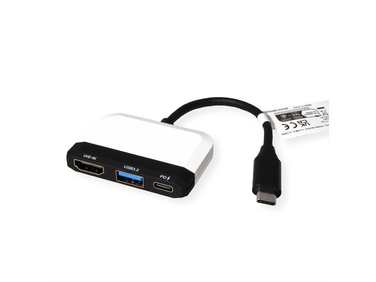 VALUE 12.99.3199. Tecnologia di connessione: Cablato, Interfaccia host: USB 3.2 Gen 1 (3.1 Gen 1) Type-C. Colore del prodotto: Nero, Bianco, Risoluzione (digitale massima): 3840 x 2160 Pixel, Tempo massimo di refresh: 60 Hz. Lunghezza cavo d'alimentazione: 0,1 m. Larghezza: 58 mm, Profondità: 40 mm, Altezza: 11 mm. Larghezza imballo: 40 mm, Profondità imballo: 80 mm, Altezza imballo: 10 mm