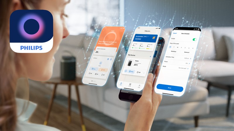 La prima gamma di termoventilatori al mondo che utilizza l'intelligenza artificiale per risparmiare energia durante il riscaldamento dell'ambiente. La nostra tecnologia EcoAI si adatta alla temperatura della stanza, analizza le abitudini di utilizzo e monitora la temperatura esterna per ottimizzare il consumo energetico. Ti basta attivare la modalità Auto+ nell'app Air+ per scoprire tante altre funzioni e godere di un comfort personalizzato con un risparmio energetico fino al 50% (1).
