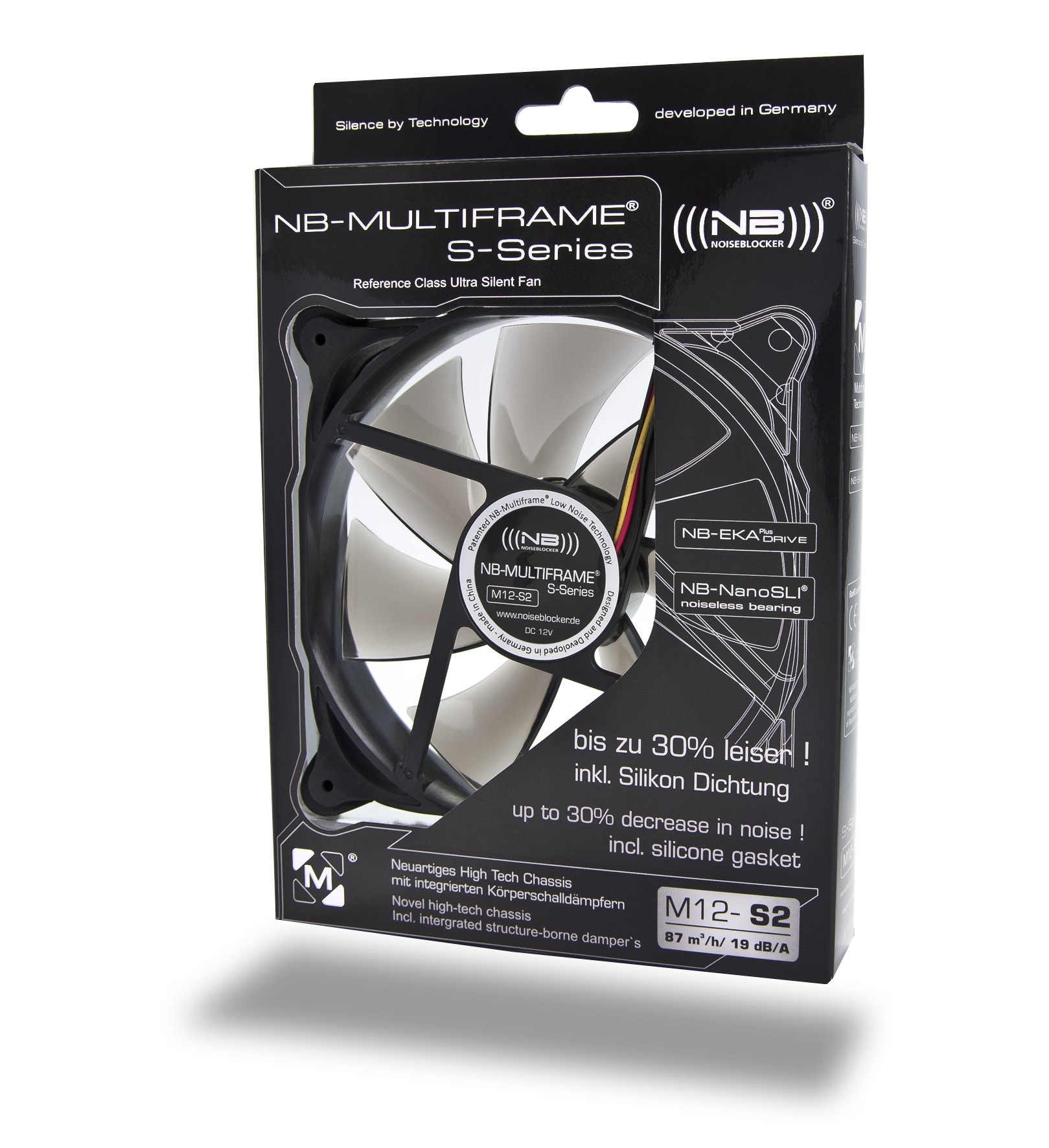 Noiseblocker M12-S2, Computer case, Ventilatore, 19 dB, Nero, Grigio, 2,91 W, -10 - 70 °C