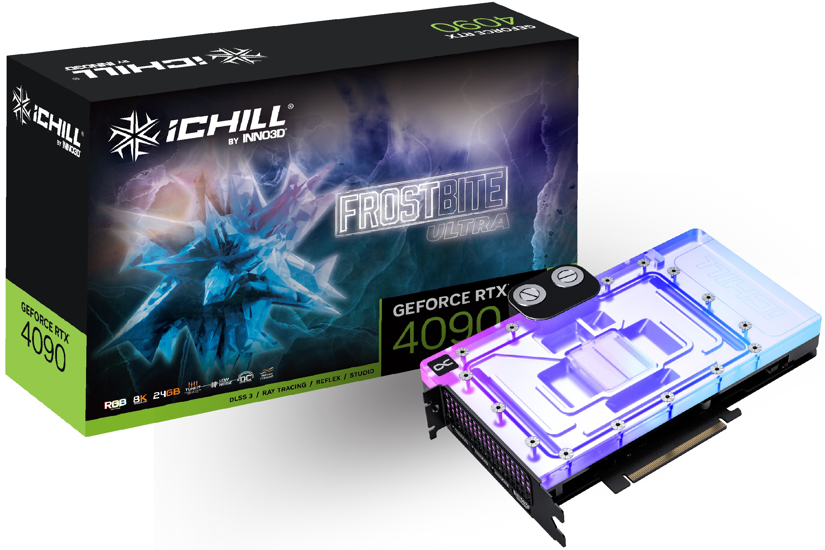 Inno3D iChill GeForce RTX 4090 Frostbite Ultra, GeForce RTX 4090, 24 GB, GDDR6X, 384 bit, 7680 x 4320 Pixel, PCI Express x16 4.0