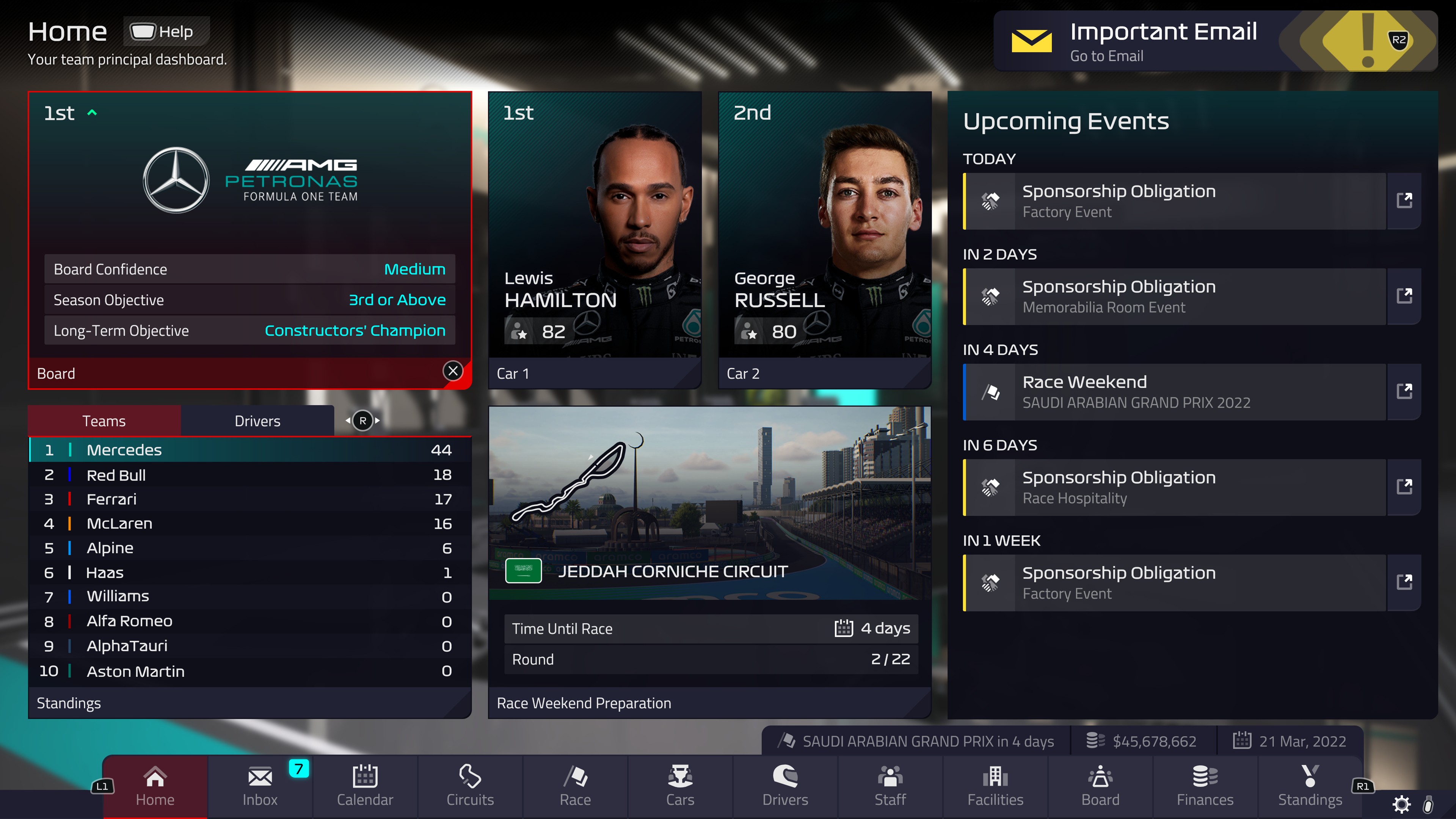 Entra nella storia della Formula 1® con il gioco su licenza ufficiale F1® Manager 2022. Diventa il team principal della tua squadra preferita, poi scegli i piloti e il personale per la stagione 2022. La licenza ufficiale F1® e l'estremo realismo di ogni suo aspetto rendono F1® Manager 2022 un'esperienza da vivere prima ancora che un gioco. - Carriera: diventa il numero uno Scrivi una nuova pagina nella storia moderna della Formula 1®. Scegli una squadra di F1® e conducila al successo nel corso della stagione ufficiale 2022. Puoi iniziare la tua corsa al titolo partendo dalle retrovie o direttamente in pole position: in F1® Manager, la scelta è solo tua. Il tuo obiettivo è stupire la dirigenza raggiungendo gli obiettivi di stagione e quelli a lungo termine, avviando la scuderia a un ciclo vincente. - Il quartier generale: costruisci la squadra Il team di costruttori è il cuore pulsante della divisione sportiva. Tra una gara e l'altra, lavorerai al quartier generale per gestire ogni aspetto del team. Analizza le prestazioni di piloti e tecnici, mantieni i conti in attivo e strappa alle squadre rivali i loro migliori talenti per acquisire vantaggio sulla concorrenza. - La fabbrica: crea l'auto perfetta Lavora direttamente sulle nuove vetture della stagione 2022 e gareggia a stretto contatto con gli avversari. Prepara nuove soluzioni tecniche in previsione del fine settimana di gara. Scegli l'approccio da seguire in fase di sviluppo per migliorare le prestazioni sui singoli tracciati. Preferisci puntare a un'auto bilanciata, concentrarti sui punti deboli o eccellere in aspetti tecnici specifici? - La gara: pianifica e metti in atto la tua strategia Dallo spegnimento delle luci del semaforo fino alla bandiera a scacchi, chi comanda sei tu. Prendi personalmente ogni decisione, dalla strategia delle soste ai box alla scelta delle gomme, incluse le comunicazioni con il pilota. Studia un piano di gara, ma con la consapevolezza che gli imprevisti sono all'ordine del giorno, a partire dal meteo e dalle condizioni variabili del tracciato. Immergiti in una simulazione iper-realistica di una gara ufficiale di F1®, presentata con lo stesso stile visivo di un evento in diretta.