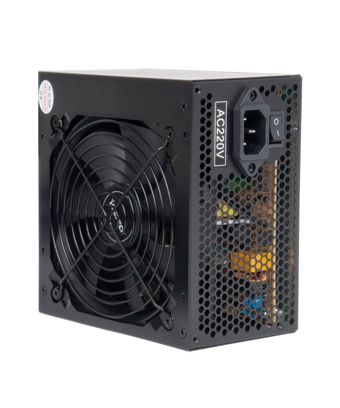 Vultech VPS-A650ER. Potenza totale: 650 W, Funzionalità di protezione dell'alimentazione: Sovracorrente, Sovralimentazione. Connettore scheda madre: 24-pin ATX, Lunghezza del cavo di alimentazione della scheda madre: 60 cm, Lunghezza del cavo di alimentazione SATA: 600 mm. Utilizzo: PC, Fattore di forma dell'unità di alimentazione (PSU): ATX. Colore del prodotto: Nero, Tipo di raffreddamento: Attivo, Diametro del ventilatore: 12 cm. Tipo di imballo: Scatola