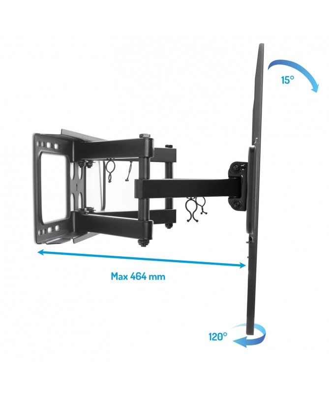 Un sistema di apertura a pantografo permette di regolare la distanza della TV dalla parete da un minimo di 53 mm a un massimo di 464 mm. È possibile, inoltre, inclinare il monitor fino a 15° e orientarlo lateralmente fino a 120°.