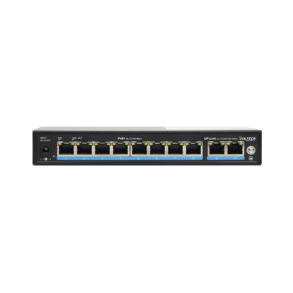 Vultech Security Switch PoE+ (Unmanaged) 8 porte 10/100 FE + 2 porte Uplink 10/100/1000 GE, Non gestito, Fast Ethernet (10/100), Supporto Power over Ethernet (PoE)