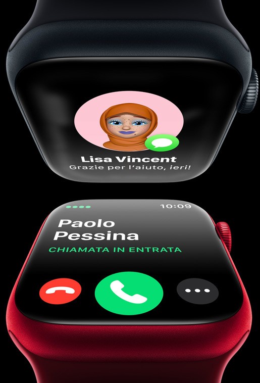 Novità: Rilevamento incidenti per chiamare automaticamente i soccorsi. Per la prima volta, Apple Watch Series 8 è in grado di rilevare se hai avuto un grave incidente d’auto, e può chiamare automaticamente i soccorsi, comunicare la tua posizione e avvisare i tuoi contatti di emergenza.2 Se tutto ciò è possibile, è merito dell’azione combinata di una serie di sensori: il microfono, il barometro, il GPS, il giroscopio a 3 assi, che è stato migliorato, e anche un nuovo accelerometro g‑force che ha la più alta gamma dinamica mai vista su uno smartwatch. I dati registrati da tutti questi sensori sono messi insieme e analizzati da un algoritmo evoluto che abbiamo addestrato con oltre 1 milione di ore di dati relativi a incidenti e condotte di guida reali.