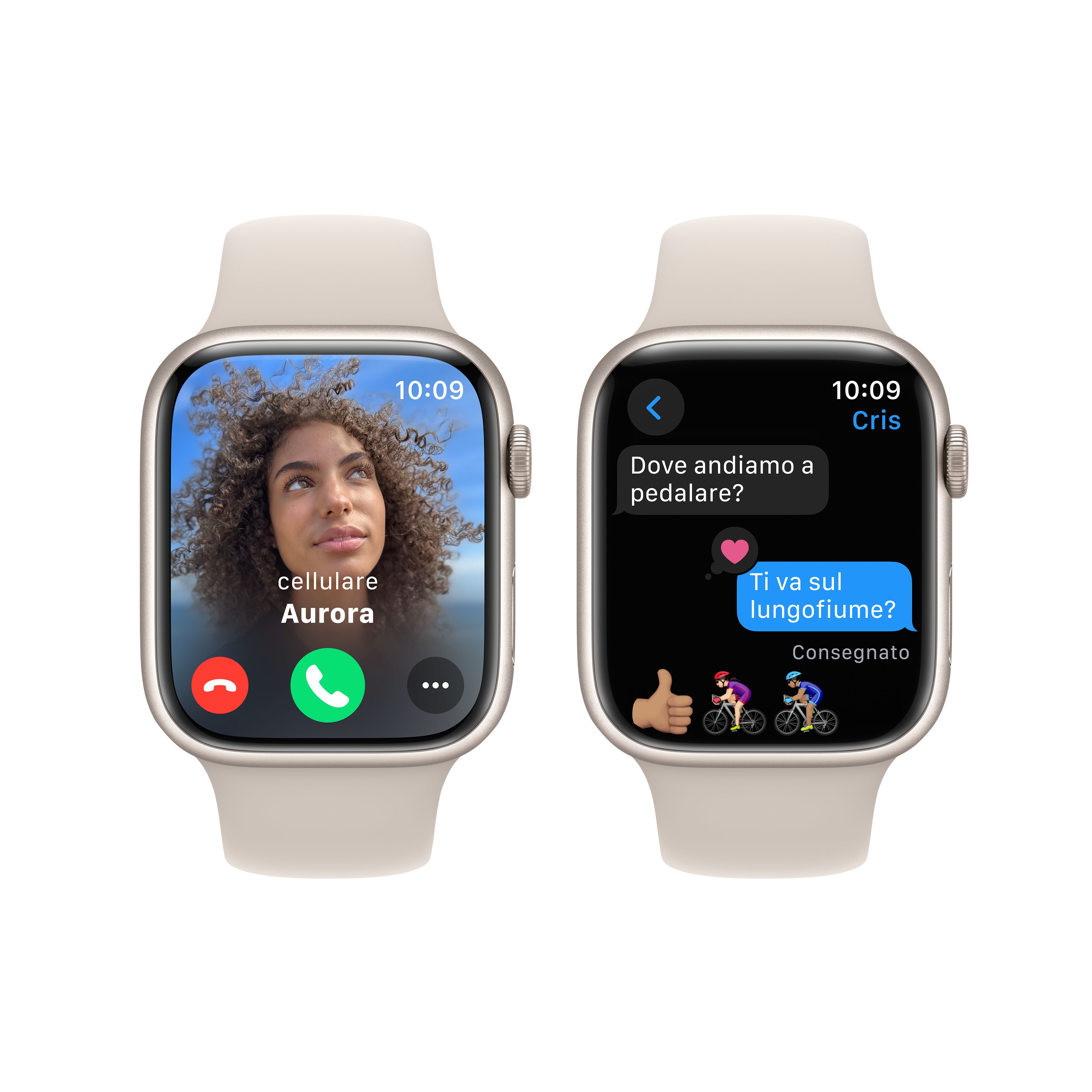 Apple Watch Series 9 GPS Cassa 45mm in Alluminio Galassia con Cinturino Sport Galassia - M/L, Touch screen, 64 GB, Wi-Fi, GPS (satellitare), 38,7 g