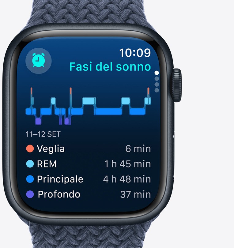 FUNZIONI EVOLUTE PER LA SALUTE – Ricevi notifiche in caso di ritmo cardiaco irregolare.5 Guarda quanto durano le tue fasi di sonno leggero, REM e profondo con la funzione “Fasi del sonno”. E tieni nota del tuo stato d’animo per sviluppare più consapevolezza emotiva e resilienza.
