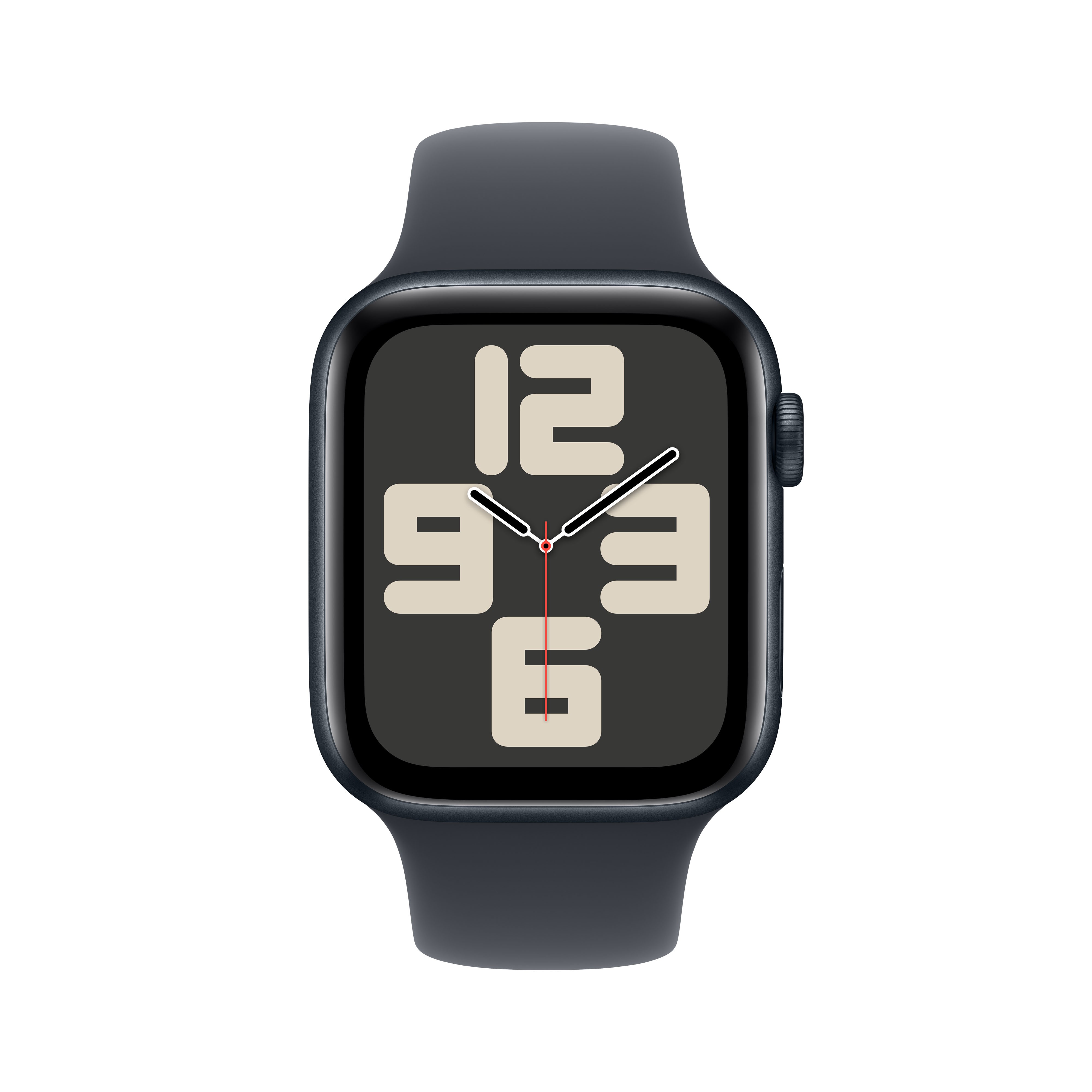 Apple Watch SE GPS 44mm Cassa Alluminio Mezzanotte con Mezzanotte Sport Band - M/L. Tecnologia display: OLED, Risoluzione del display: 368 x 448 Pixel, Touch screen. Memoria flash: 32 GB. Wi-Fi. GPS (satellitare). Peso: 32,9 g. Impermeabile fino a: 50 m, Materiale cinturino: Gomma, Colore cinturino: Nero, Dimensione del cinturino: M/L. Sistema operativo incluso: watchOS 11