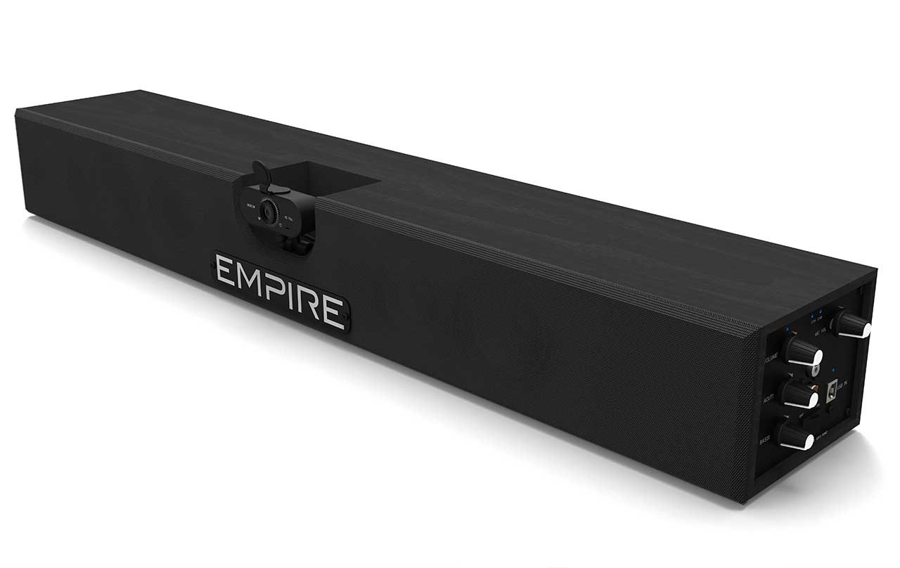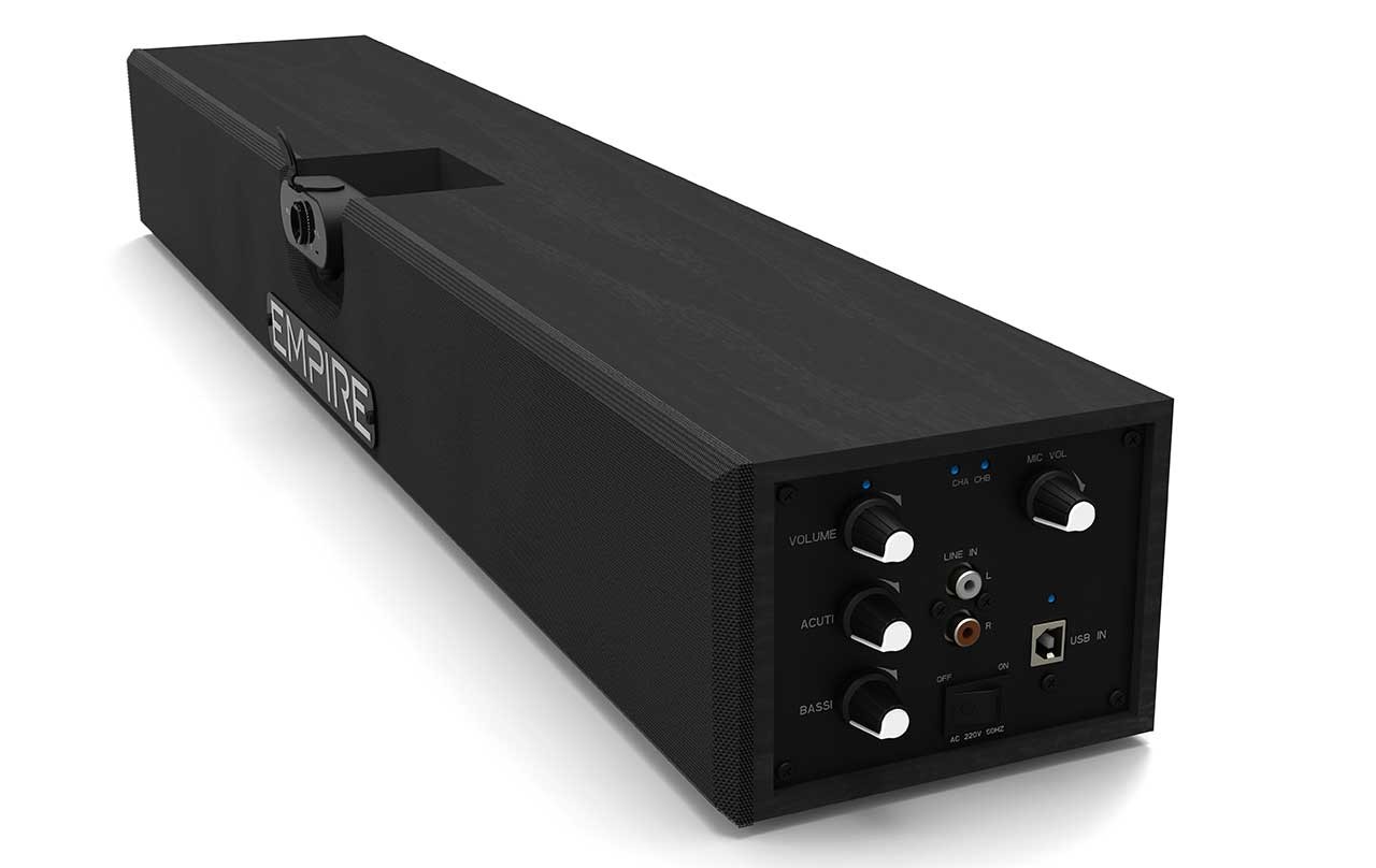 L’evoluzione ci ha portato a migliorare la già ottima soundbar SBC1, strumento definitivo per Videoconferenze, Presentazioni Online e DAD. Soundbar dalla qualità audio impeccabile, 2 radiomicrofoni UHF inclusi ed una Webcam 4K. Cosa è cambiato? - Abbiamo aumentato la potenza passando da 100Watt a 140Watt in modo da avere un volume più alto in sale di grandi dimensioni. - Gli altoparlanti interni ora sono più ricchi e ricercati per ottenere un suono avvolgente e profondo. - In confezione oltre al classico microfono wireless UHF a gelato (ICE) EMPIRE SB-ICE1 abbiamo aggiunto il nuovissimo e performante microfono EMPIRE MIC4. - Il microfono EMPIRE MIC-4 è un concentrato di tecnologia: wireless UHF, dalla forma compatta è ideale per essere posizionato al centro di un tavolo riunioni. Al suo interno ci sono 4 microfoni a condensatore (uno per lato) che permettono di captare la voce di tutte le persone sedute al tavolo in maniera semplice e chiara. La webcam 4K incorporata ti permetterà di essere visto in videochiamata con una qualità di immagine nitida. Il collegamento USB ti permette di collegare SBU-PRO a qualsiasi device dotato di porta USB. Con il cavo USB da 8 metri potrai posizionare SBU-PRO dove vuoi e con i controlli separati del volume generale e del volume microfono potrai regolare in maniera indipendente e precisa per una massima personalizzazione di ascolto. Devi collegare uno smartphone, un lettore mp3 o un tablet alla soundbar SBU-PRO? Grazie all’ingresso di linea RCA con il cavo in confezione potrai riprodurre l’audio. Come per il modello SBC1 è presente un’uscita di linea RCA per collegare ulteriori sistemi audio amplificati.