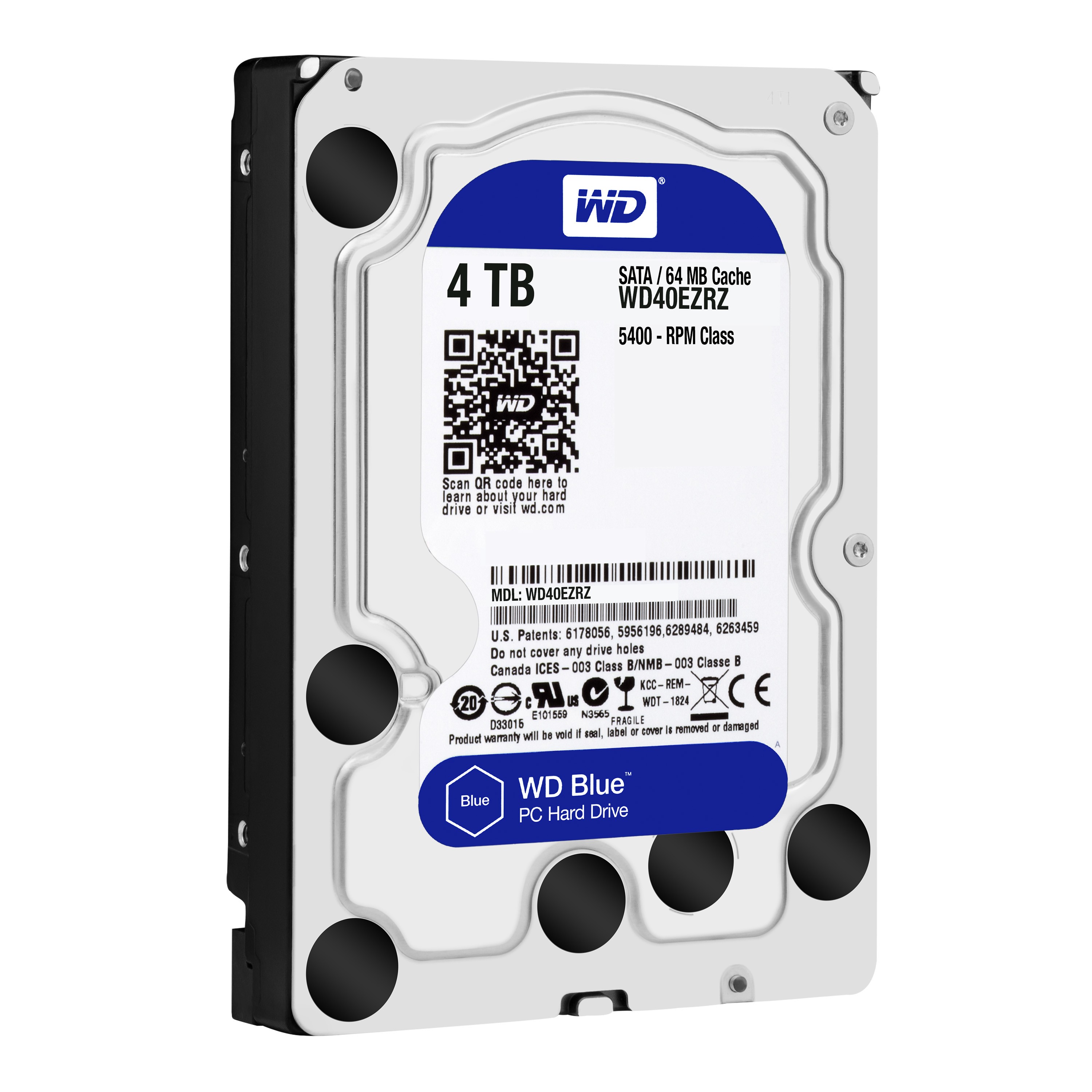 Western Digital Blue. Capacità hard disk: 4 TB, Velocità di rotazione hard disk: 5400 Giri/min, Dimensione del buffer HDD: 64 MB, Dimensione hard disk: 3.5", Interfaccia: Serial ATA III
