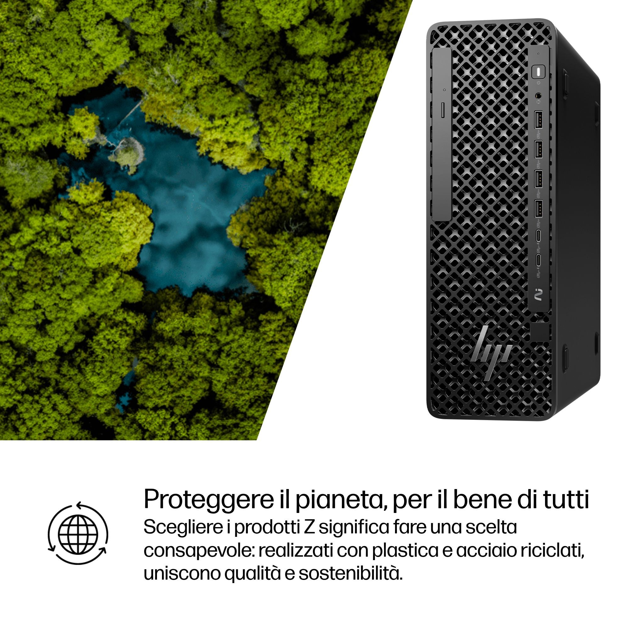 HP Z2 G1i Wolf Pro Security Edition. Famiglia processore: Intel Core Ultra 7, Modello del processore: 265. Memoria Interna: 32 GB, Tipo di RAM: DDR5-SDRAM, Velocità memoria: 5600 MHz. Capacità totale di archiviazione: 1 TB, Supporto di memoria: SSD. Modello scheda grafica integrata: Intel Graphics, Scheda grafica dedicata: NVIDIA RTX A1000. Sistema operativo incluso: Windows 11 Pro. Alimentazione: 500 W. Tipo di case: SFF. Tipo di prodotto: Stazione di lavoro. Peso: 4 kg. Colore del prodotto: Nero