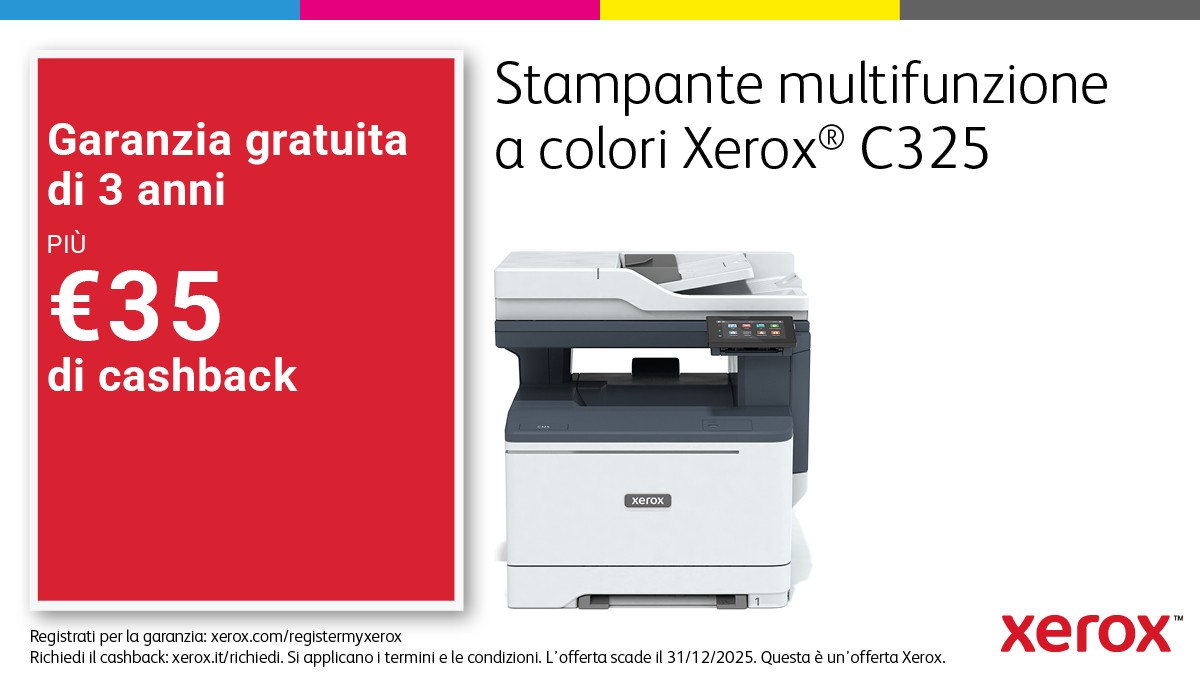Recensioni Xerox C325 A4 33 ppm Copia/Stampa/Scansione/Fax fronte/retro wireless PS3 PCL5e/6 2 vassoi 251 fogli