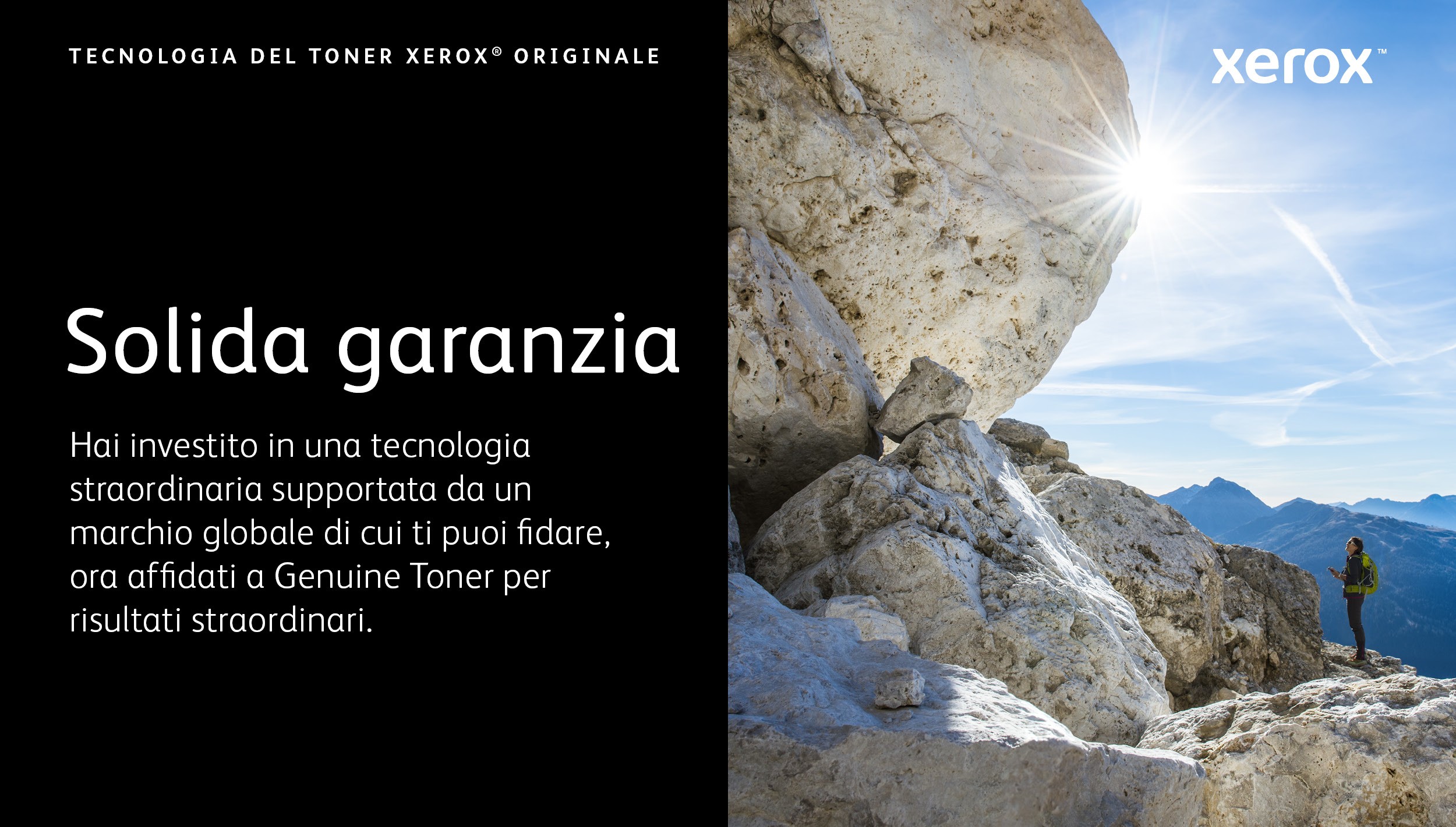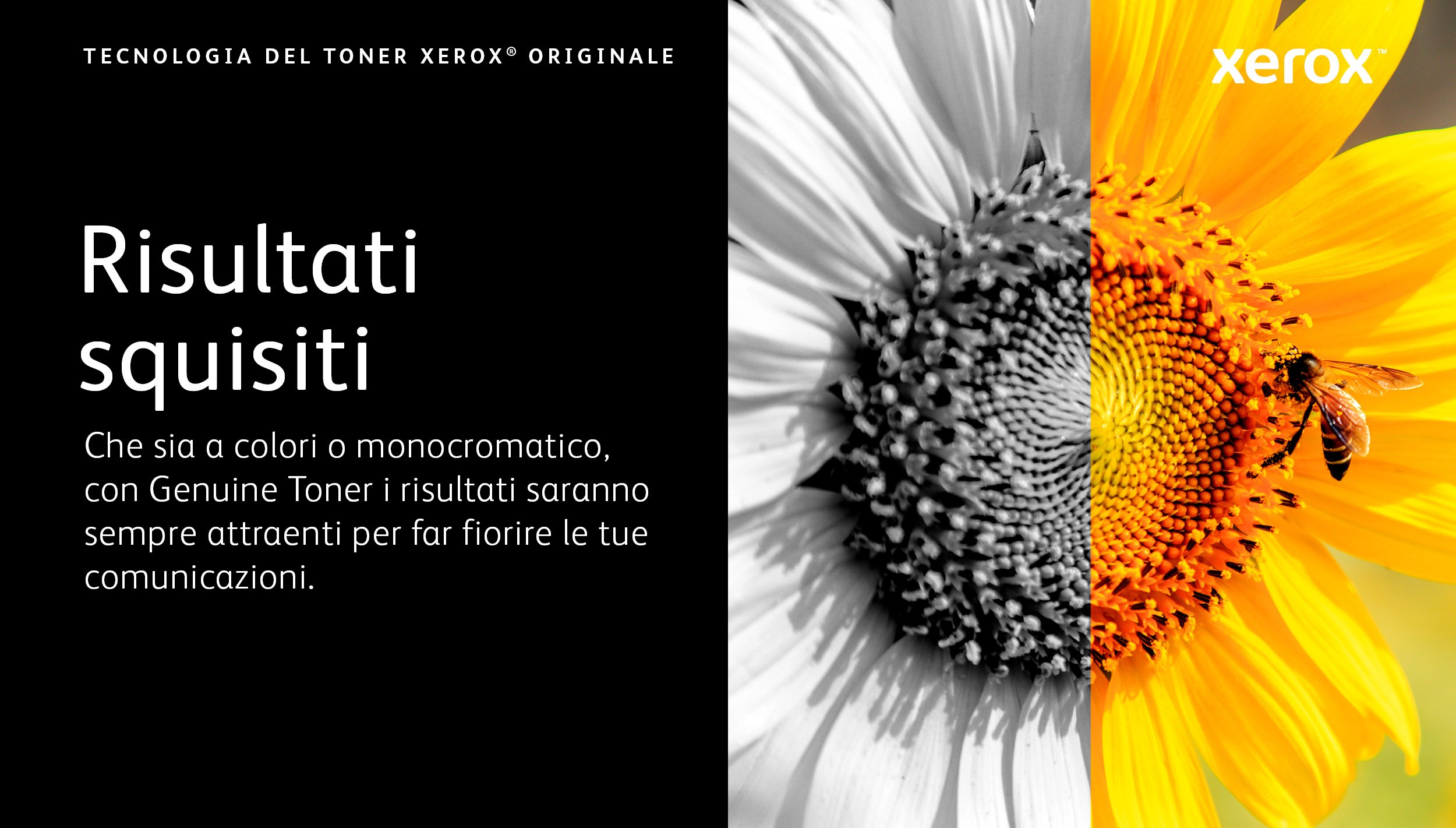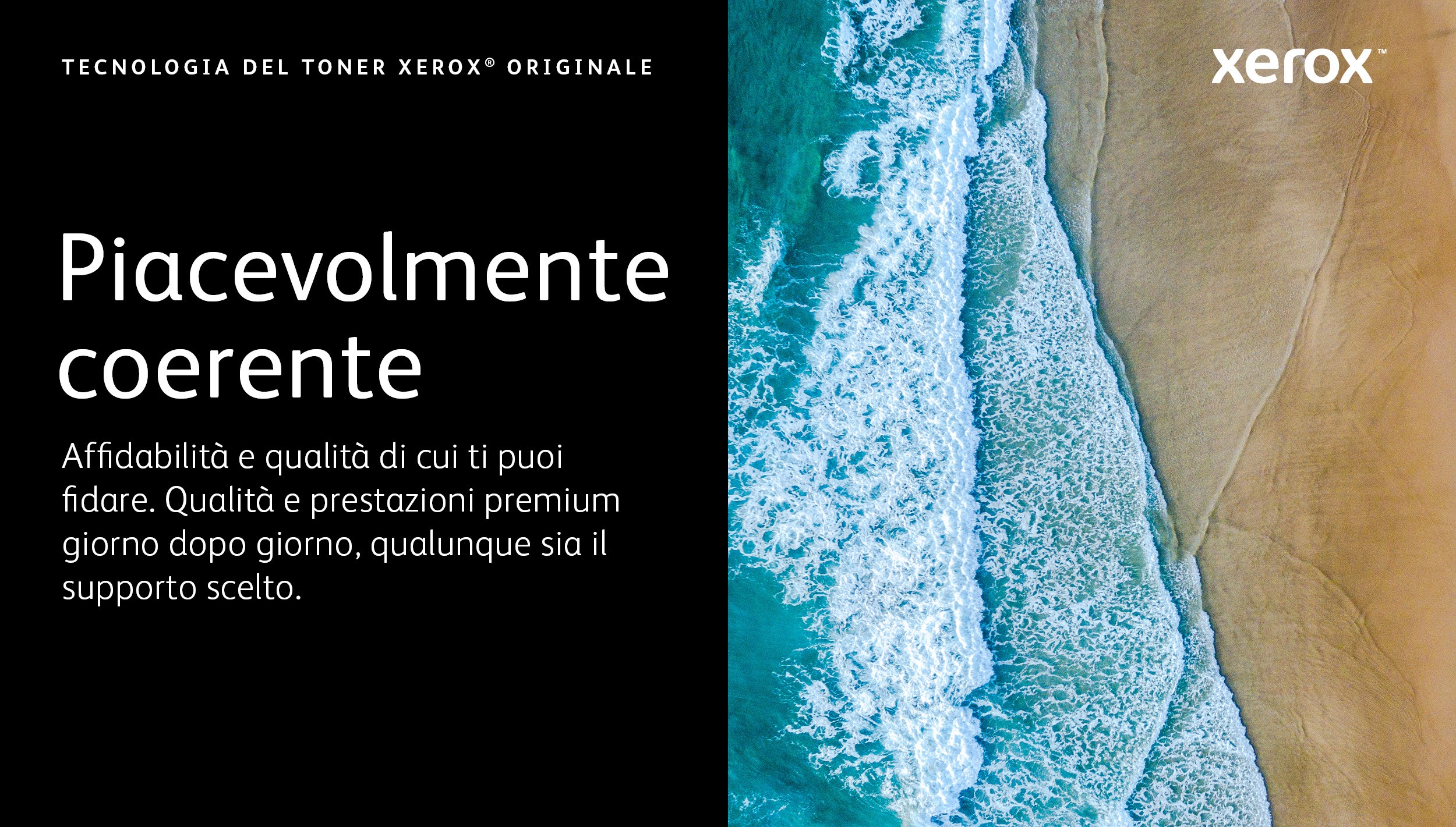Risultati eccezionali, affidabili, efficienti dal punto di vista energetico e vivaci. Totale rassicurazione combinando sempre stampanti Xerox e Toner originale Xerox.