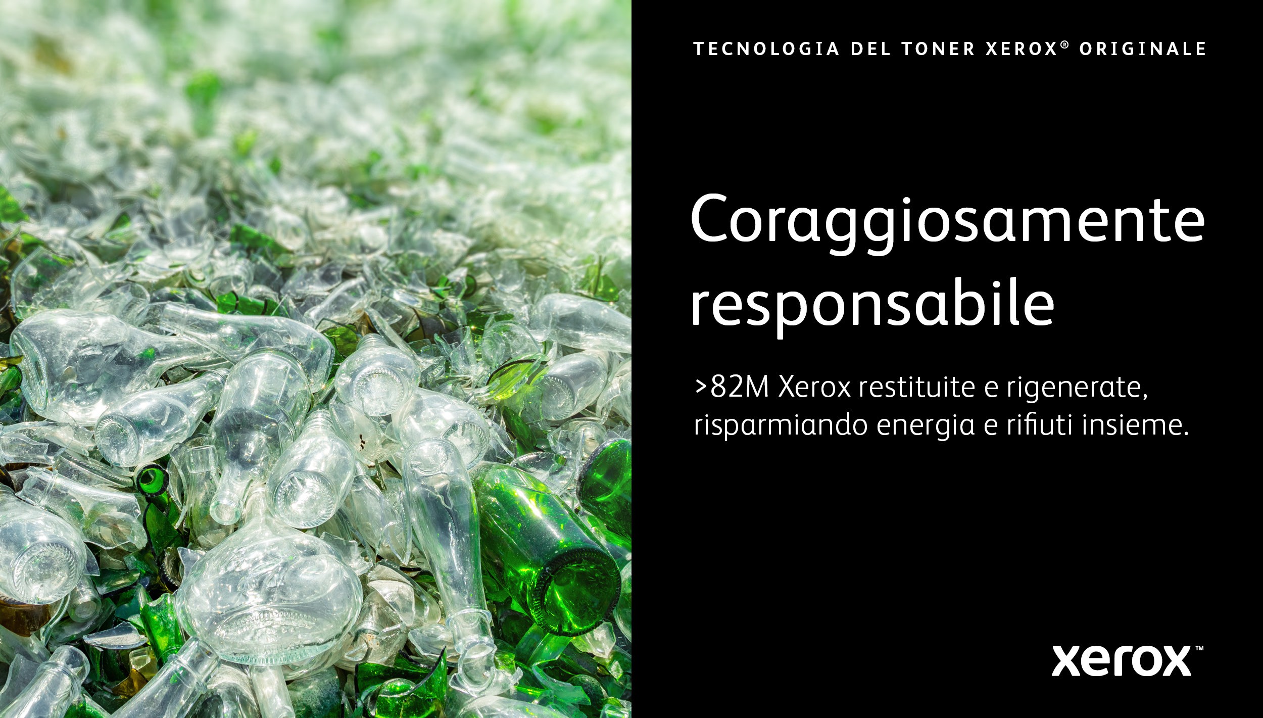 >82M Xerox restituite e rigenerate, risparmiando energia e rifiuti insieme.