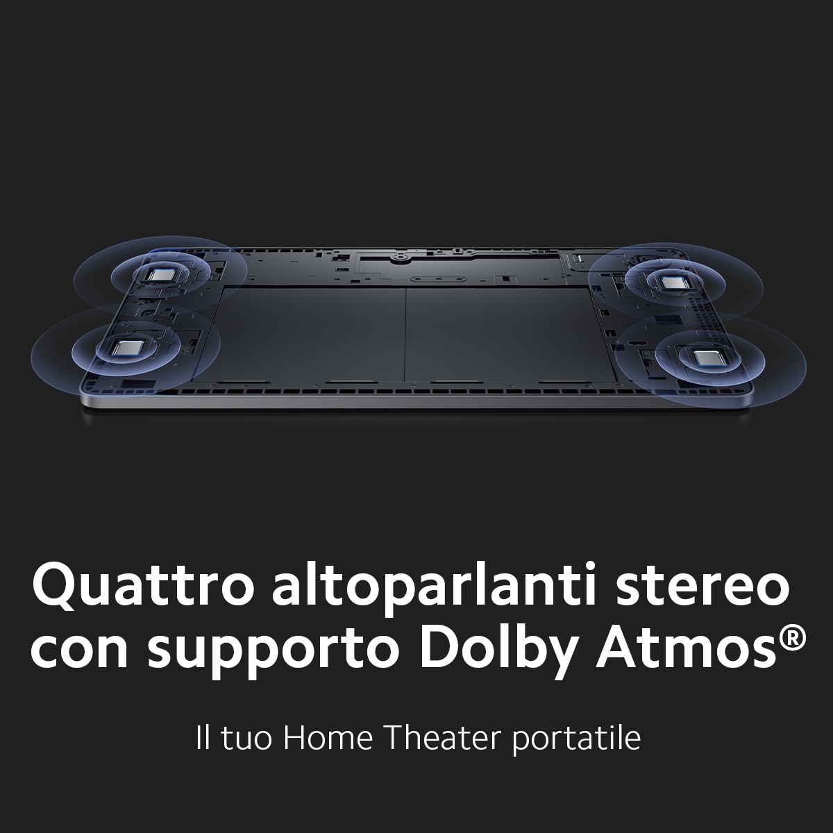 Redmi Pad SE è equipaggiato con quattro altoparlanti certificati Hi-Res Audio, per fornire il massimo coinvolgimento audio e migliorare nettamente la visione di video e film. Supportando Dolby Atmos®, Redmi Pad SE offre un'incredibile esperienza cinematografica portatile.
