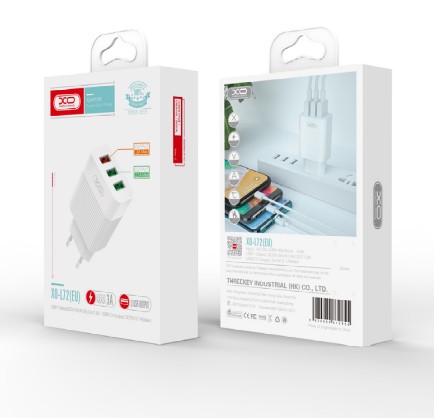 XO L72(EU). Tipo di caricatore: Interno, Tipologia alimentazione: AC. Voltaggio di ingresso: 100 - 240 V, Tensione di uscita (max): 12 V. Quantità porte USB 2.0: 3, Ricarica rapida. Colore del prodotto: Bianco