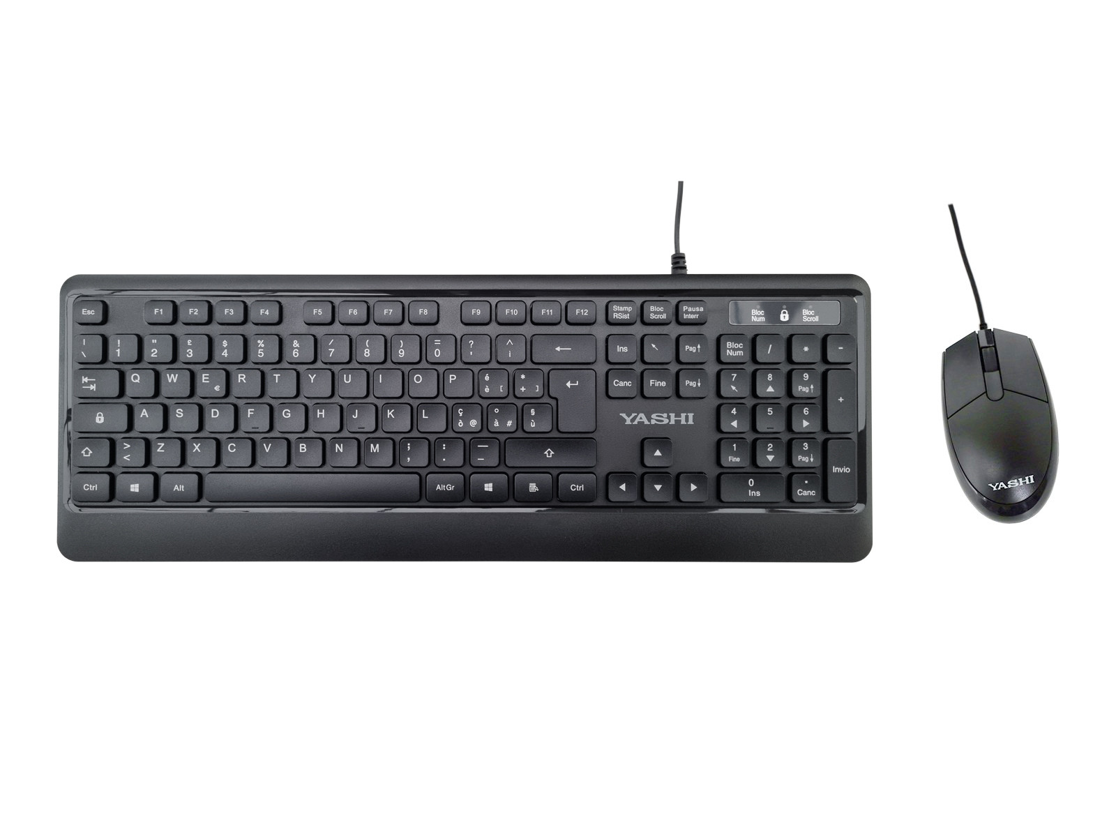 YASHI TASTIERA E MOUSE USB KIT, SOFT, NERO, ITA