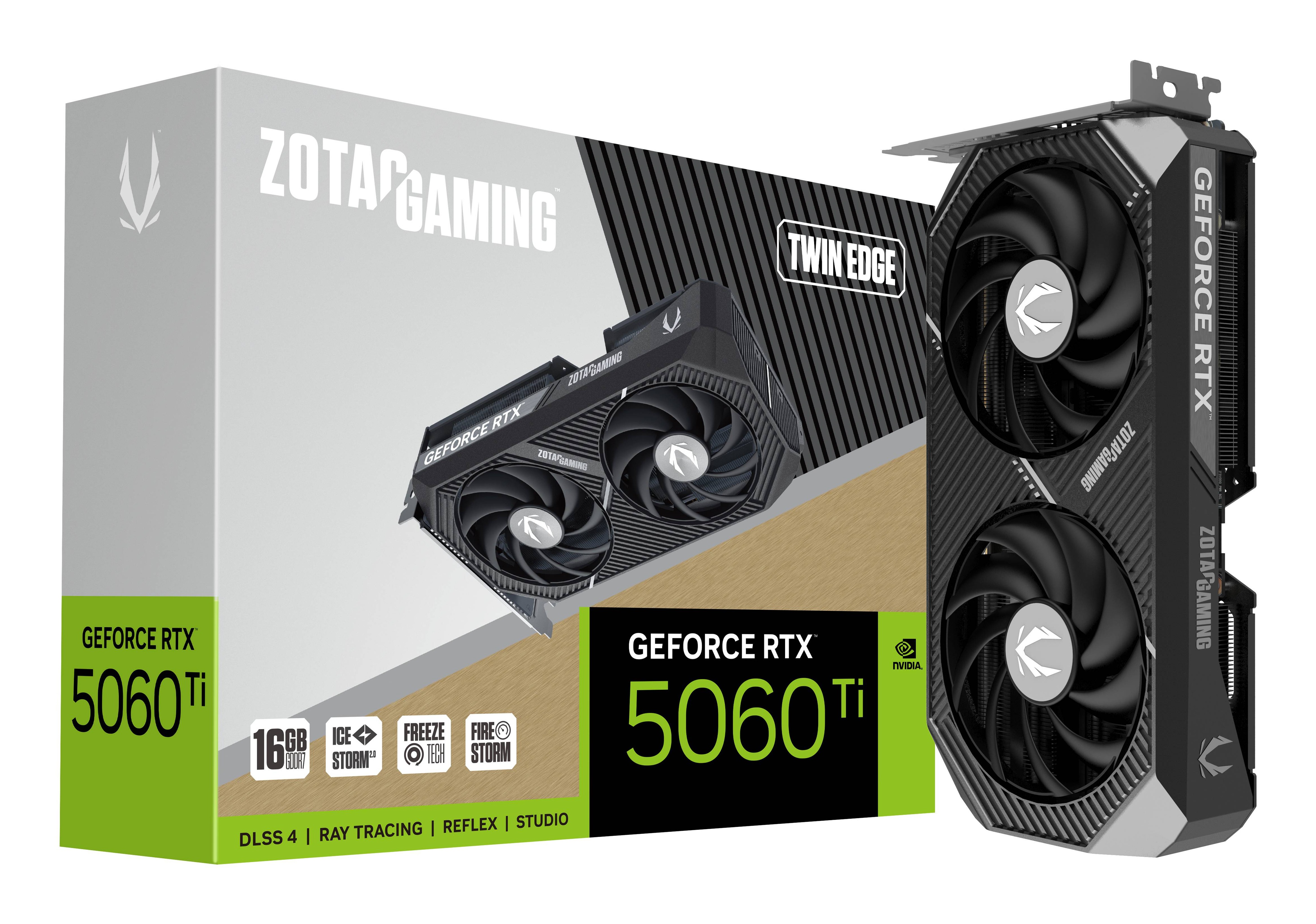 Zotac GAMING GeForce RTX 5060 Ti Twin Edge, GeForce RTX 5060 Ti, 16 GB, GDDR7, 128 bit, 7680 x 4320 Pixel, PCI Express x8 5.0